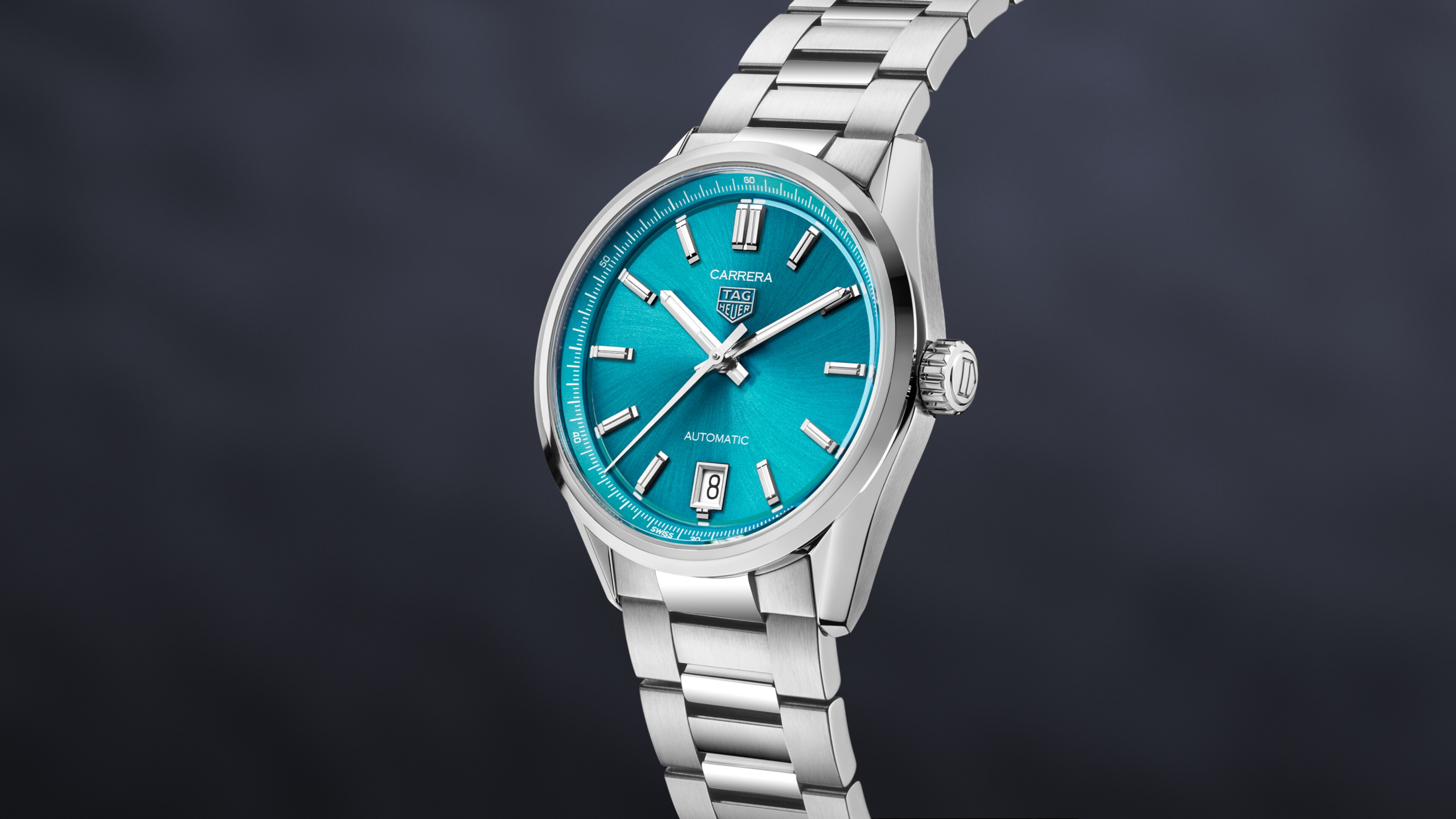 Automatic, 36 mm, Steel WBN2316.BA0001Introducing the TAG Heuer Carrera date in 36mm, a stunning timepiece featuring a turquoise blue snailed brushed dial and a robust steel case. Designed for elegance and precision, it offers a striking blend of style and functionality.
