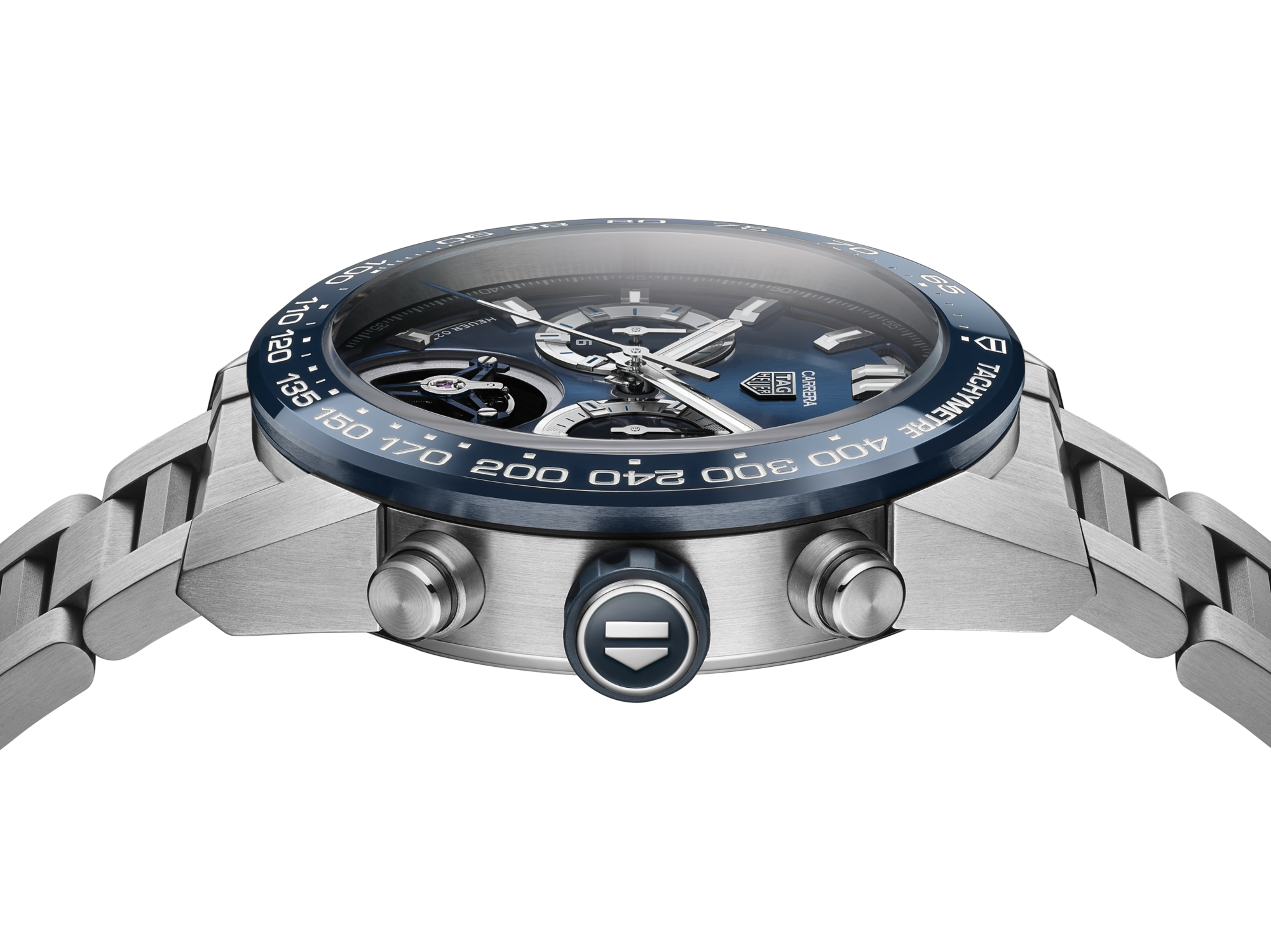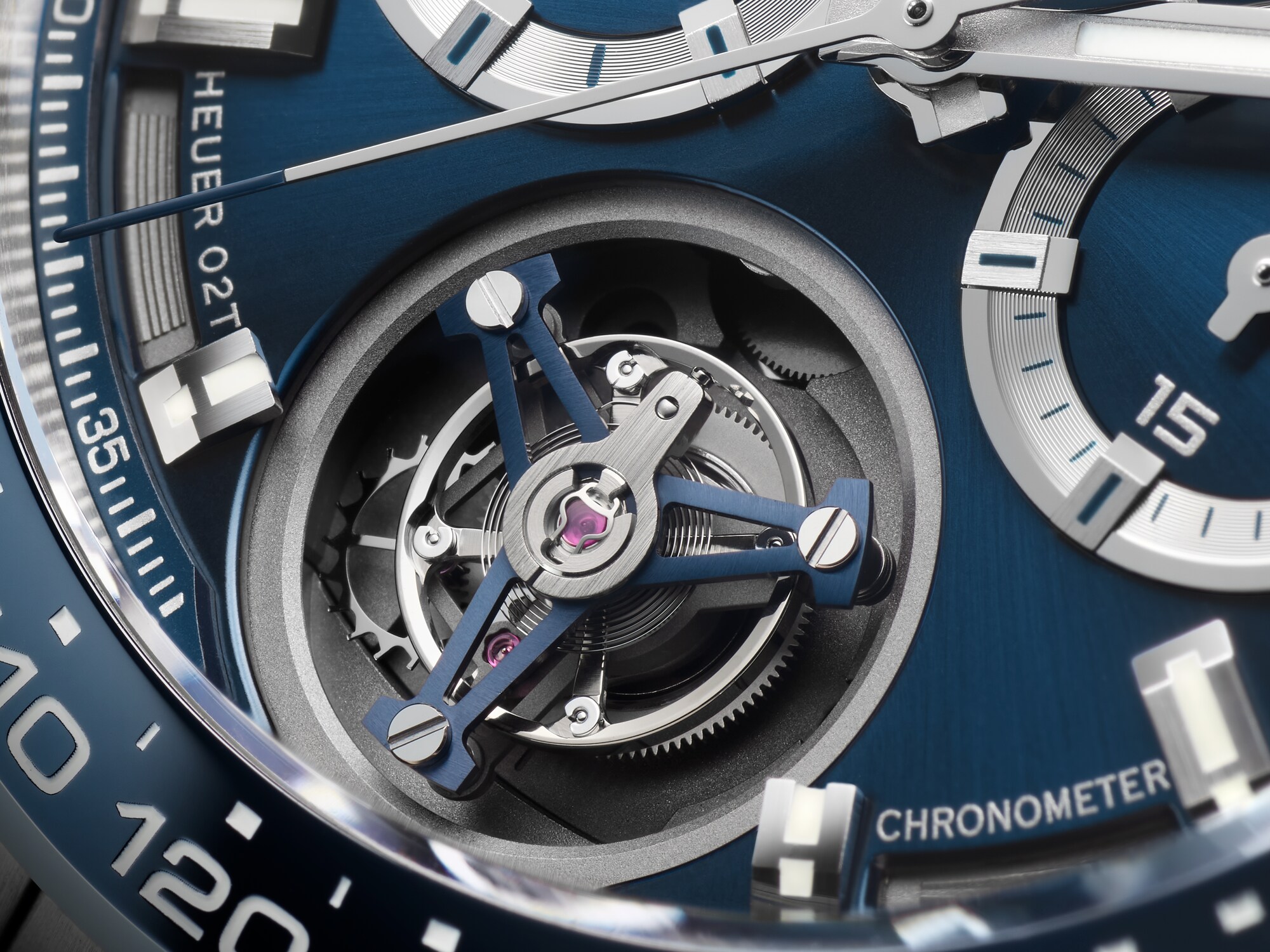 Azionato dal movimento automatico Calibre Heuer 02T COSC, questo modello che aggiunge al cronografo il brivido del tourbillon è un'audace affermazione di stile.