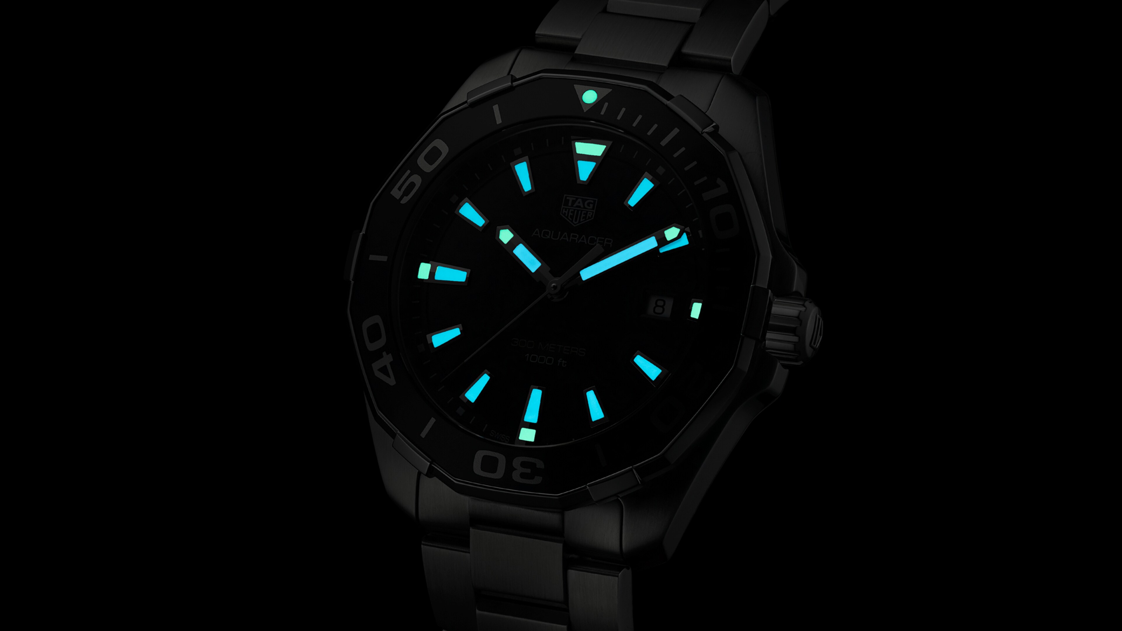 The crucial diving requirements include luminous markers for full visibility at all depths, anti-reflective sapphire crystal and steel bracelet with diver extension and security clasp.