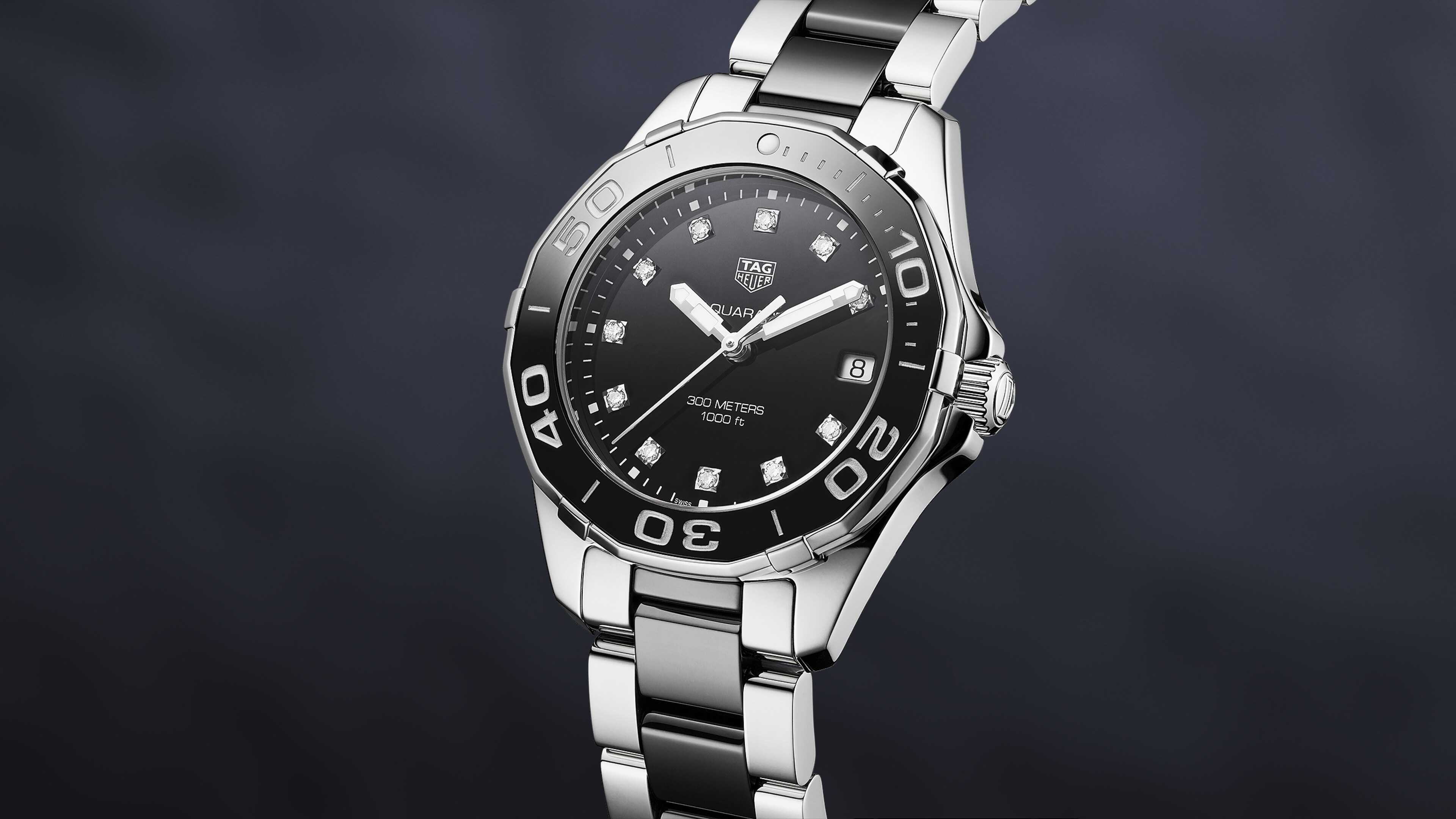 Quartz, 35 mm, Acier WAY131C.BA0913Son apparence est sobre et contemporaine : un boîtier discret de 35 mm avec un cadran noir orné de diamants et une lunette en céramique noire polie et inrayable. Une alliance d'acier et de céramique pour un confort au poignet inégalé.
