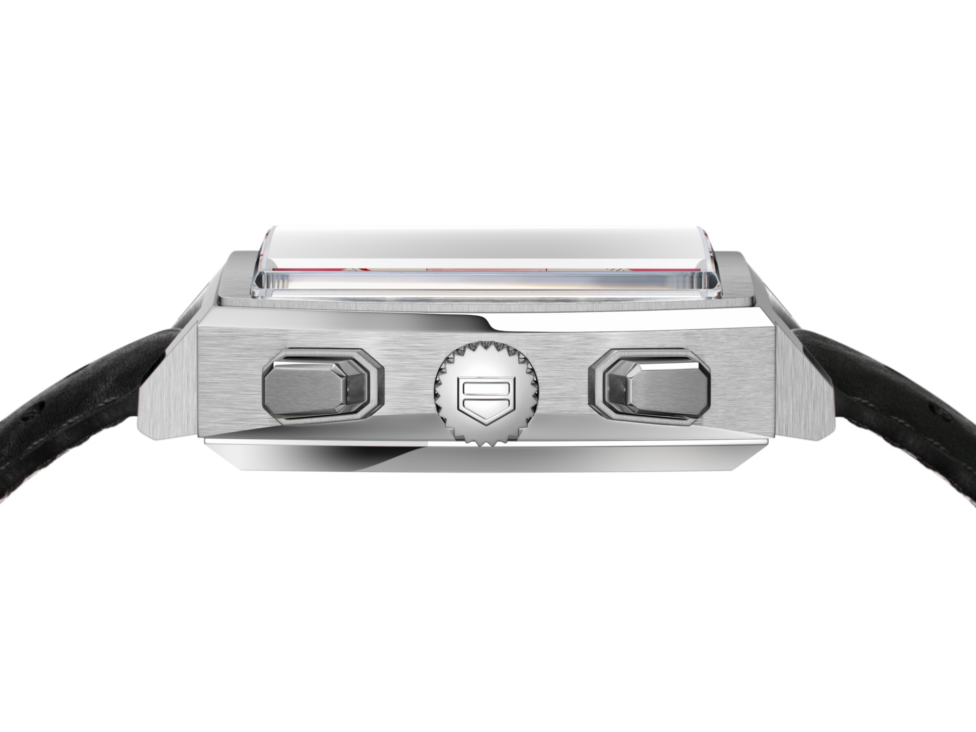 This Monaco is a 1000 pieces limited-edition, celebrating our partnership with the GPHM (Grand Prix Historique de Monaco). This Monaco stands out even more from the crowd with an exclusive red sunray dial, the iconic square box from the Monaco collection, and our in-house Heuer 02 movement with a 80 h power reserve, visible from the saphire case back.