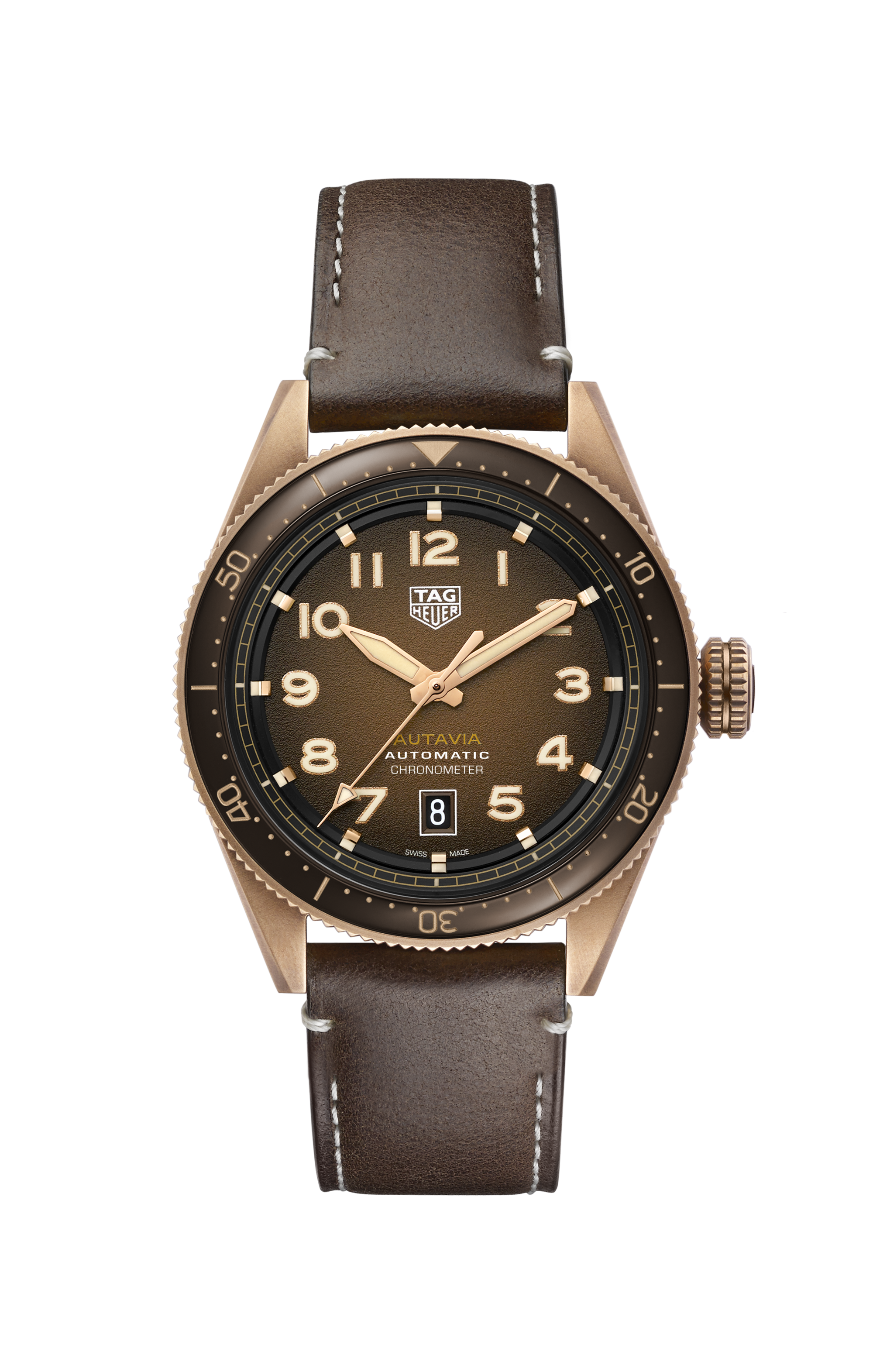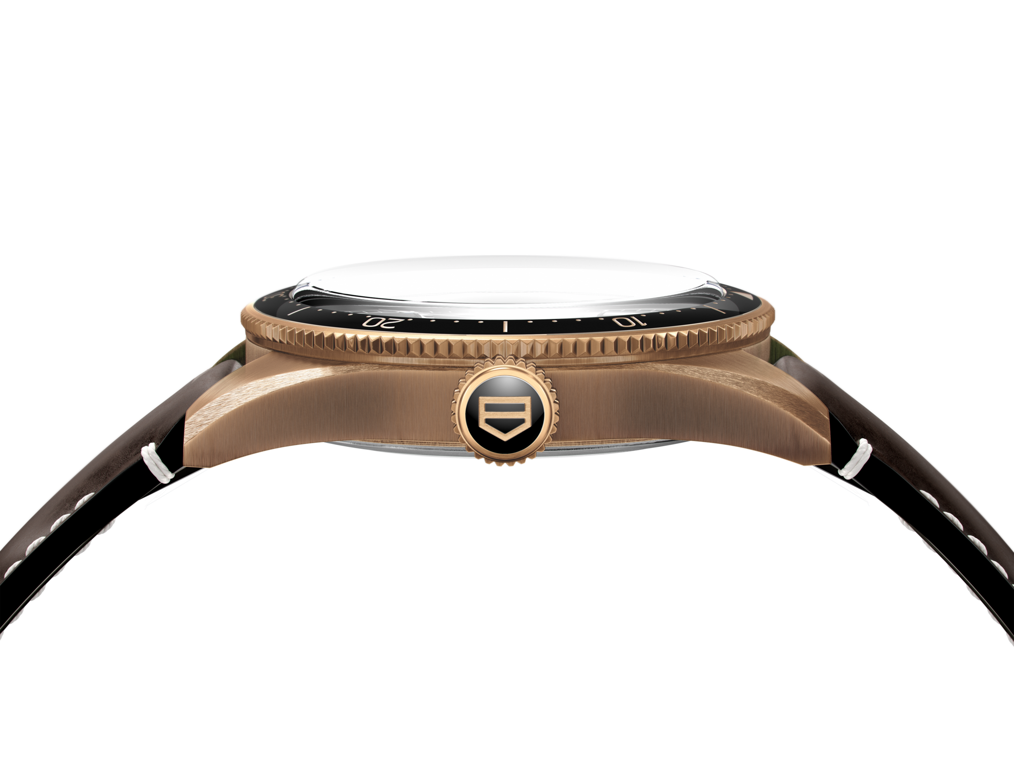 El espléndido brillo de la caja de bronce de 42 mm combina perfectamente con la espectacular correa de piel de becerro marrón chocolate. Con su aspecto duro y atrevido, es el cómplice perfecto de la nueva generación de exploradores.