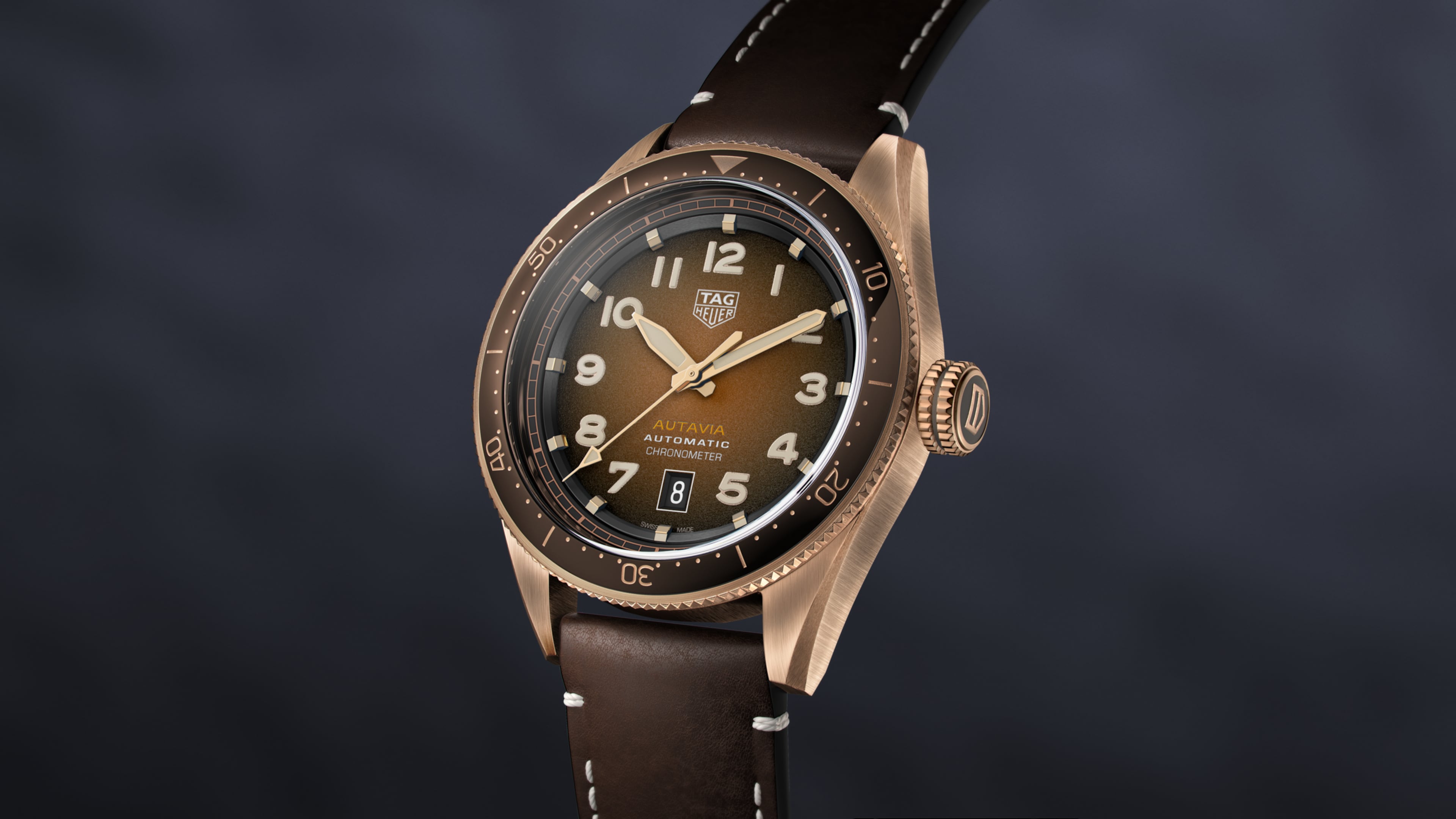 Automático, 41 mm, Bronce WBE5191.FC8276Un sobrio reloj automático inspirado en los relojes para pilotos de estilo vintage, con caja de bronce y esfera color marrón chocolate ahumada. El diseño vintage se acentúa con materiales innovadores, como el titanio del fondo de caja y la cerámica marrón del bisel giratorio bidireccional.