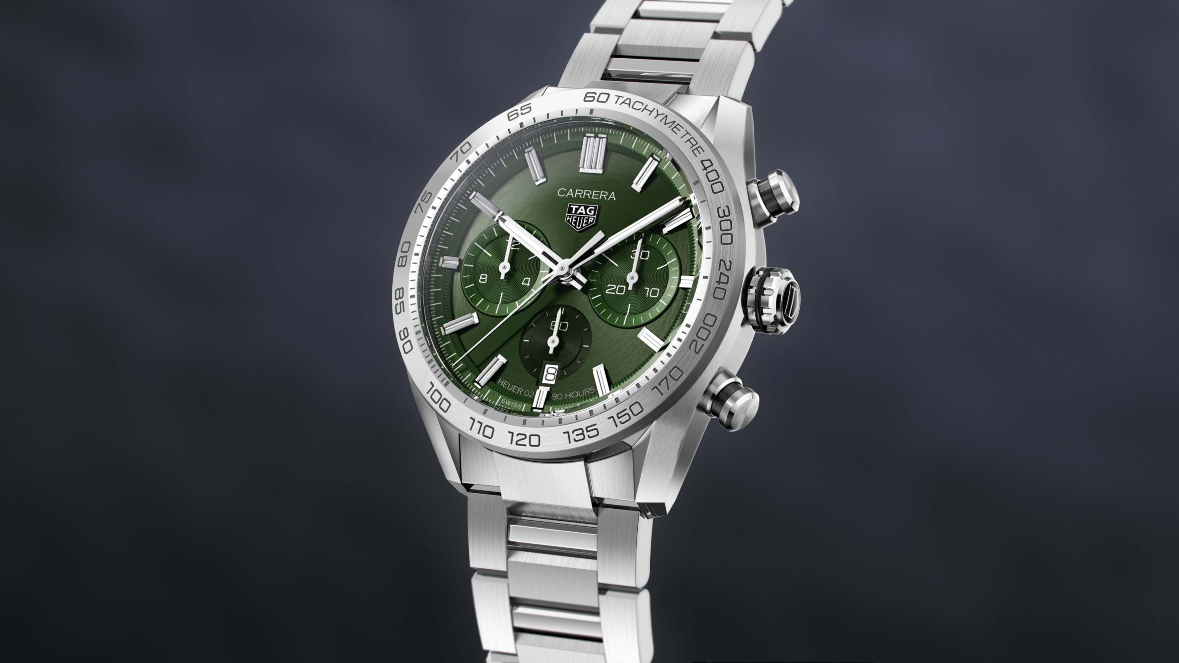 Automático, 44 mm, Acero CBN2A10.BA0643Un cronógrafo TAG Heuer Carrera con todo el prestigio de su patrimonio automovilístico. Con una caja de acero pulido y satinado de 44 mm, nuestro movimiento automático de Manufactura Heuer 02 y la moderna esfera verde satinada, realzada por un segundero y dos contadores de cronógrafo verdes, hacen que el estilo sea inmejorable.