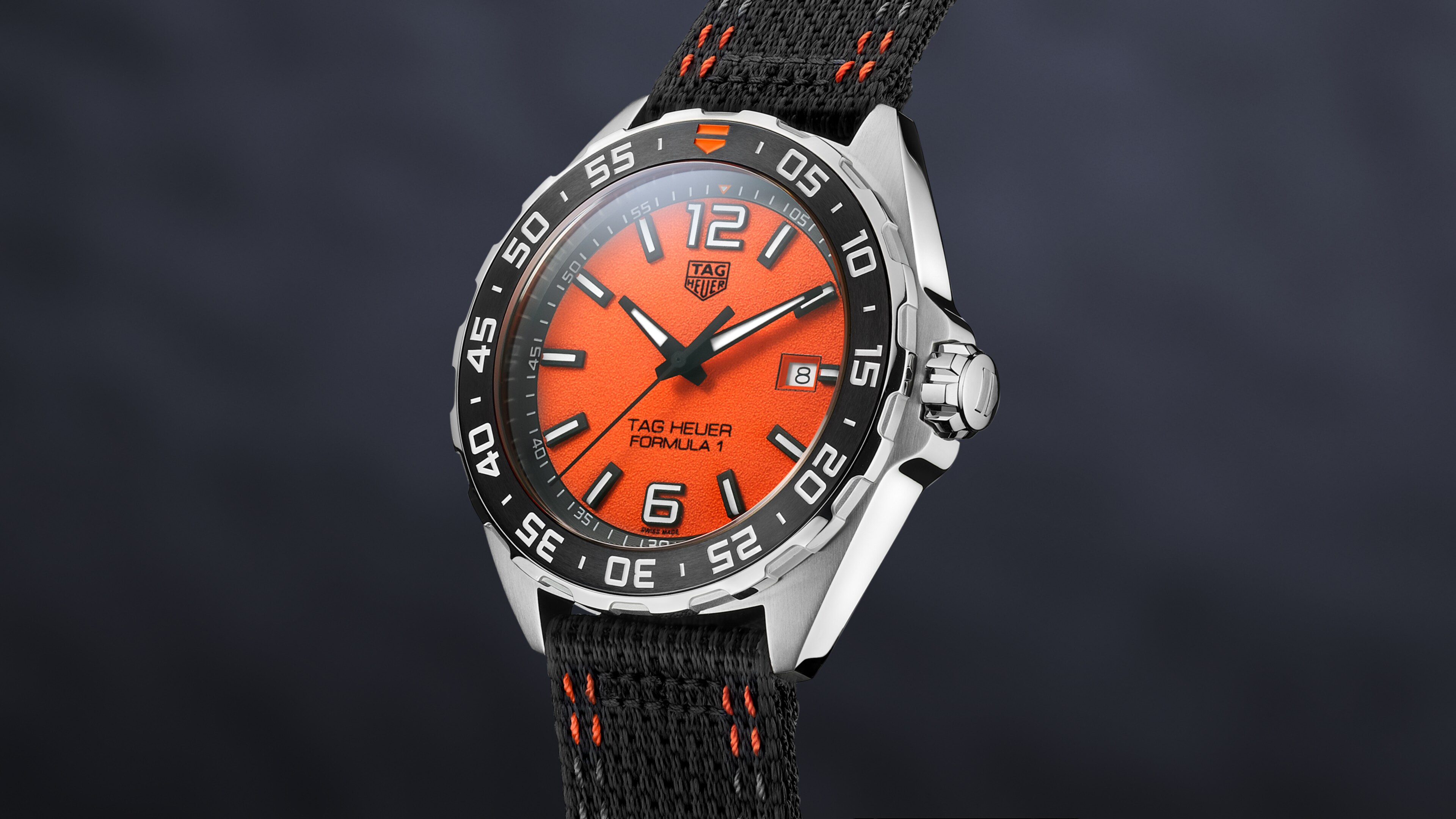 Cuarzo, 43 mm, Acero WAZ101A.FC8305Un deportivo reloj de 43 mm de 3 agujas con una atrevida esfera texturizada en naranja y pinceladas blancas, a juego con una correa de nailon negra con toques naranjas y grises. Un homenaje a los dinámicos modelos TAG Heuer Formula 1 de la década de los años 80 y 90.
