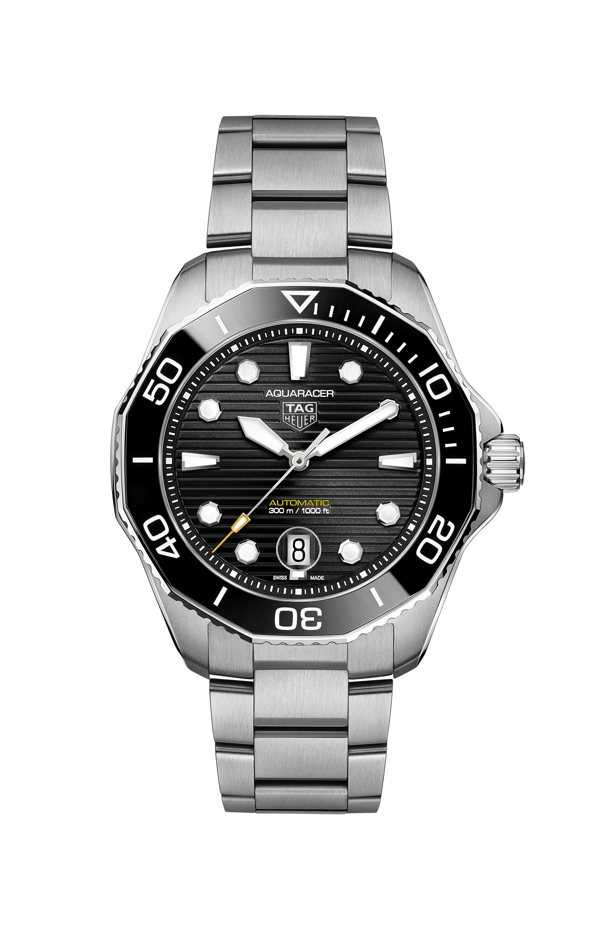 Built for diving, the new TAG Heuer Aquaracer with a black sunray brushed dial is the ultimate everyday watch. Updated with a new case and bracelet and powered by the automatic Calibre 5, the Aquaracer raises the bar for performance.