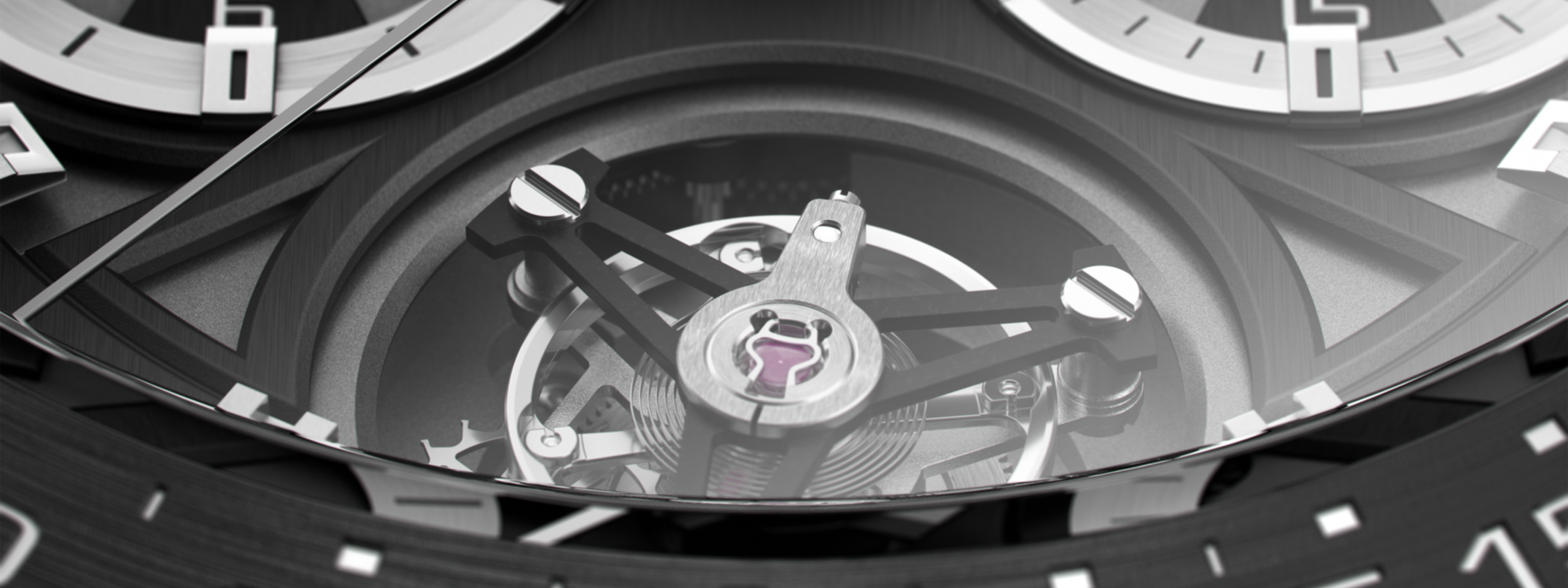 Functions Hours, Minutes, Chronograph : 1/4 second, 30 minutes counter, 12 hours counter, Tourbillon 1 minute