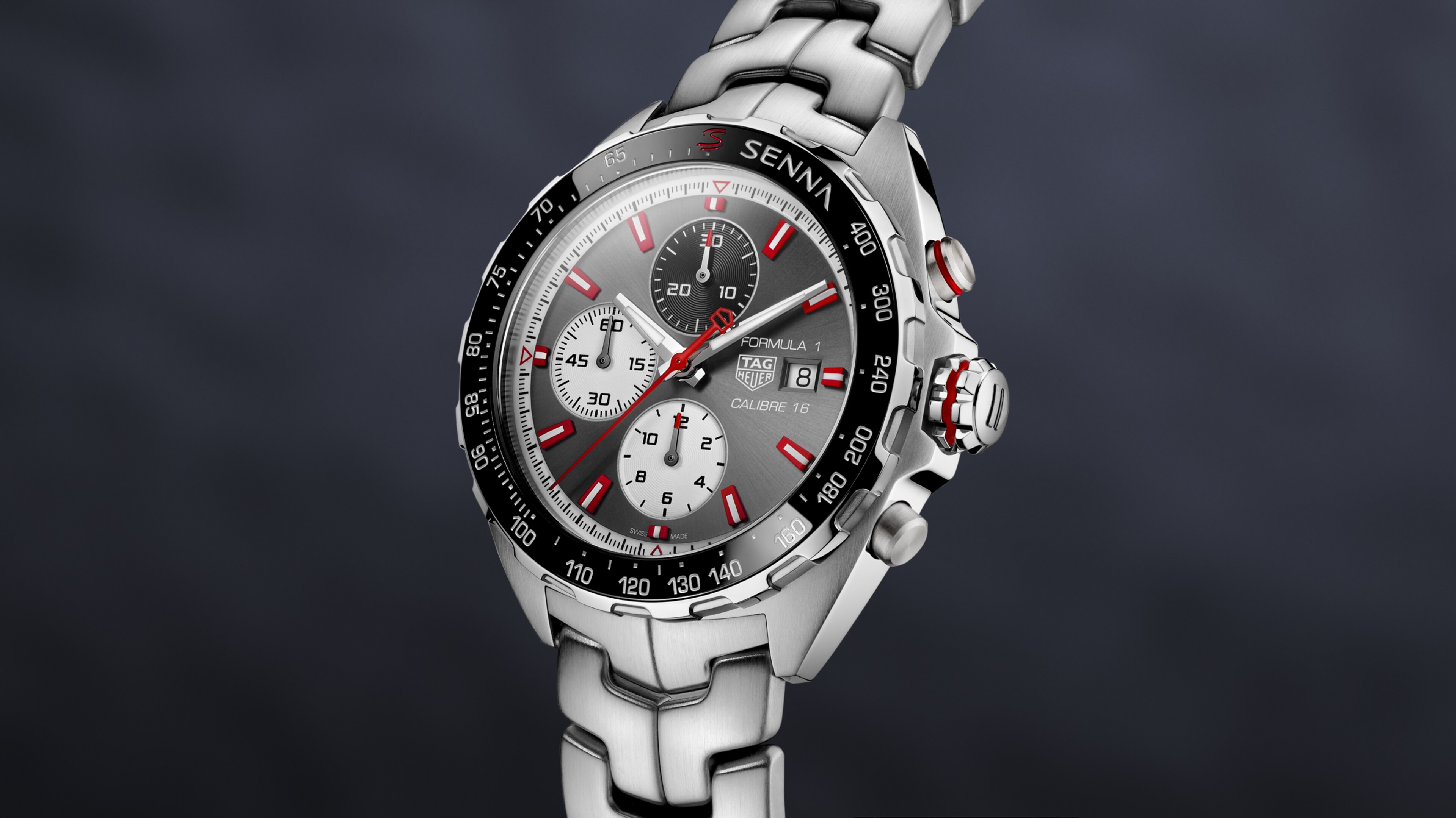 Automatic, 44 mm, Steel CAZ2017.BA0647The 25-year Ayrton Senna tribute edition features an engraving of the legend’s iconic helmet on its steel screw-down case, and his name in white at one o’clock on the ceramic black polished tachymeter fixed bezel. It also sports S-shaped bracelet he helped develop.