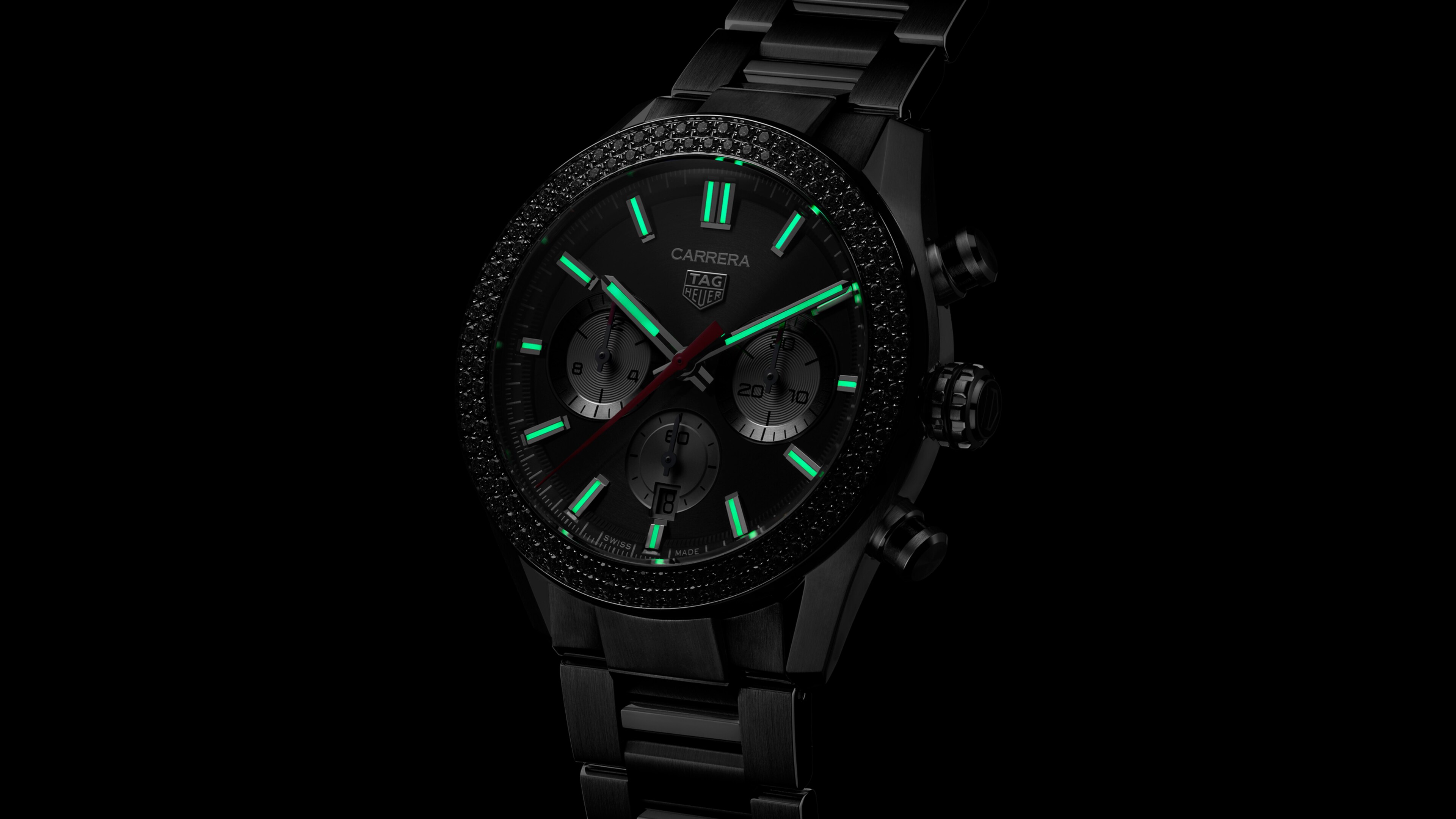 Automatic, 44 mm, Steel CBN2A12.BA0643This Carrera redefines prestige with its exclusive design. The limited edition TAG Heuer Carrera boasts a striking diamond bezel that compliments the rich black dial. Its exclusivity is heightened by a limited release of just 200 pieces.