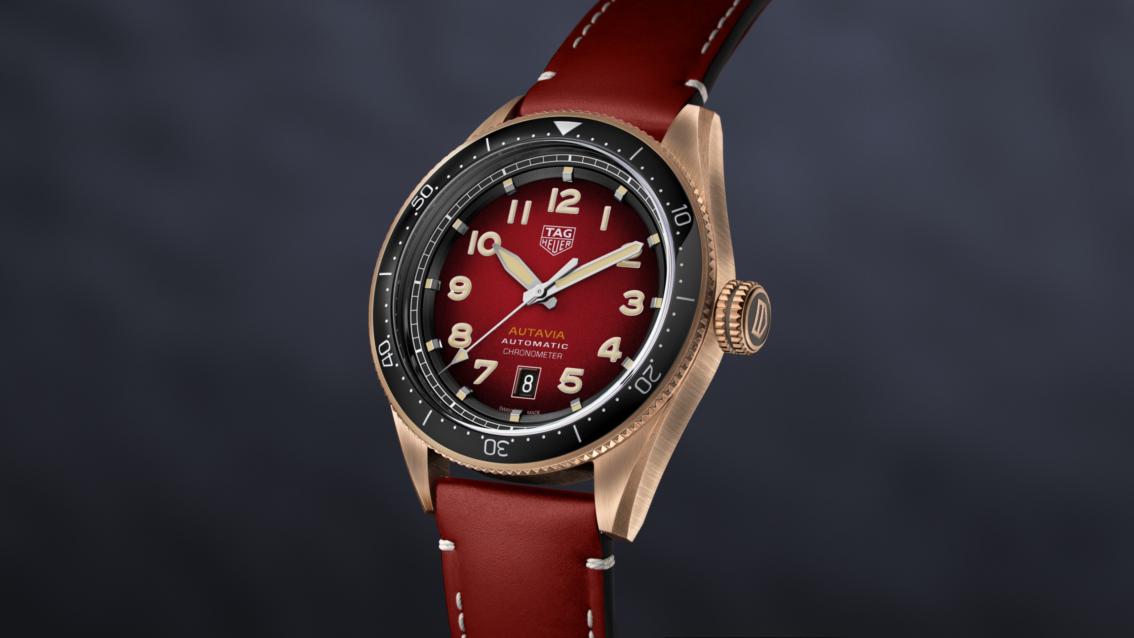 The Autavia in bronze tells a unique story with an ever-changing patina that captures the wearer’s adventures while keeping time with a COSC-certified automatic movement.