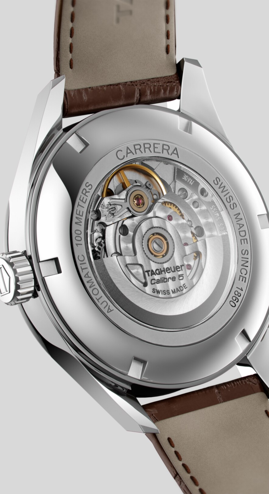 Automatic, 41 mm, Steel WAR201D.FC6291The white dial and brown alligator strap give this automatic watch with Day-Date dial the look of a true classic. Rose-gold plated (5N) hands and indexes add luxury luster.
