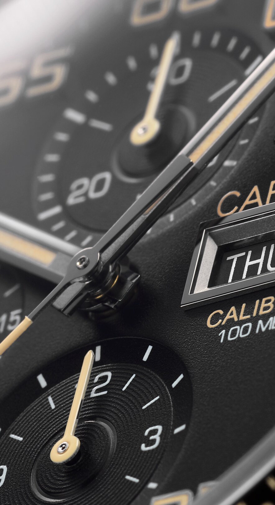 Bold lugs fix the wrist strap to the case. The TAG Heuer Carrera’s lugs are parallel and elongated, with straight lines that feel solid and sturdy on the wrist, while still slipping elegantly under the cuff.