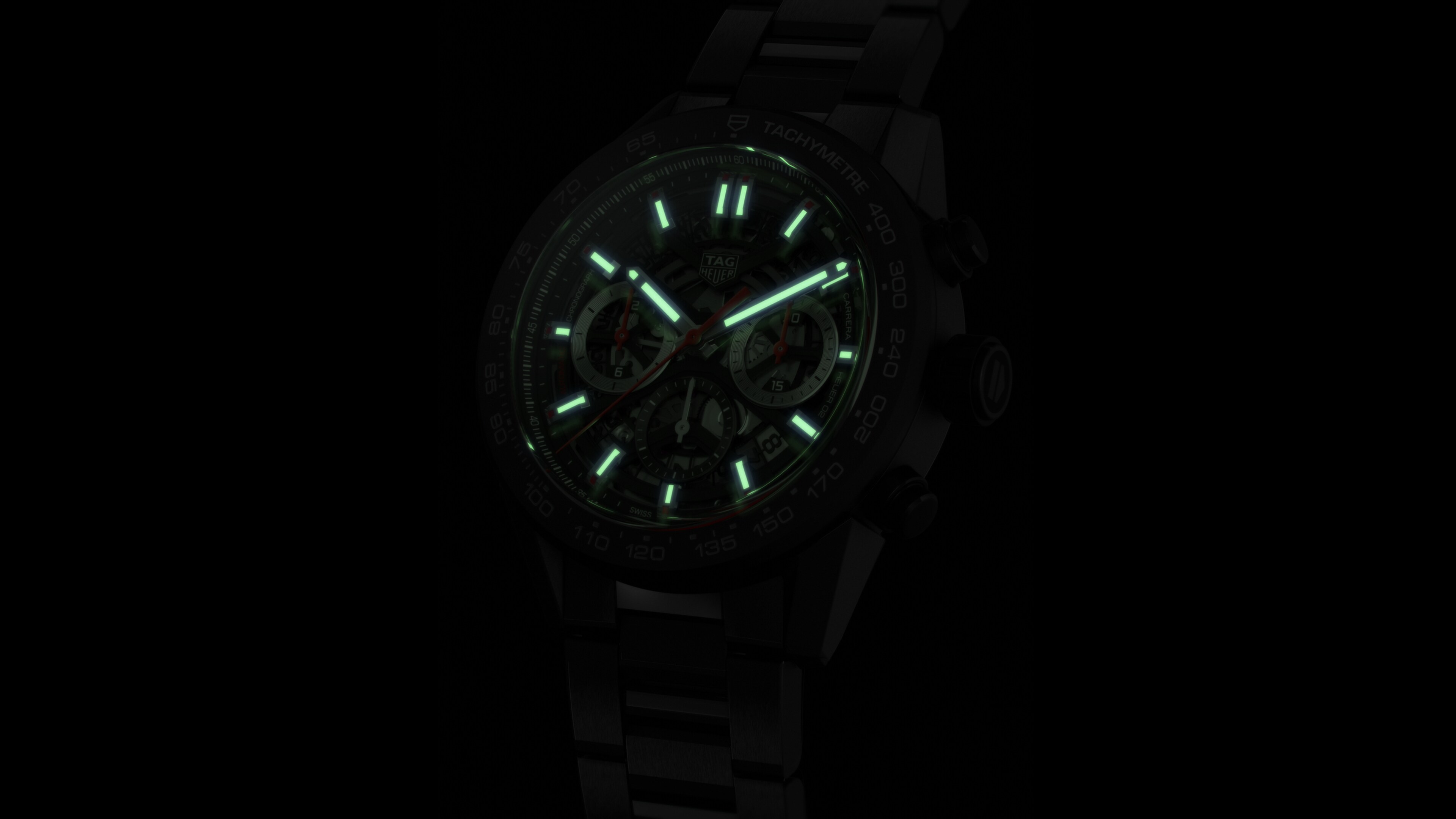 Leading-edge materials from automobile industrie are used throughout the design. Open-working reveals the inner workings of the 100% in-house manufactured movement, the Heuer 02, with a stunning 80 hours power reserve.