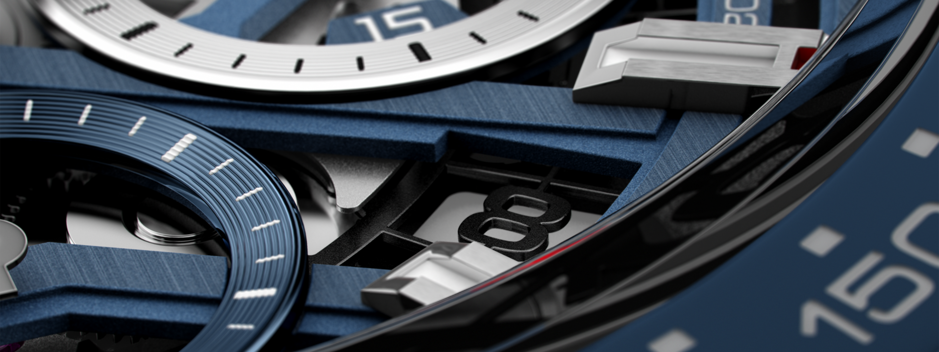 Water-resistant to 100 meters, the skeleton dial and screw-in sapphire case back offer dazzling views of the in-house manufactured Heuer-02 movement, which provide a 80 hours power reserve.
