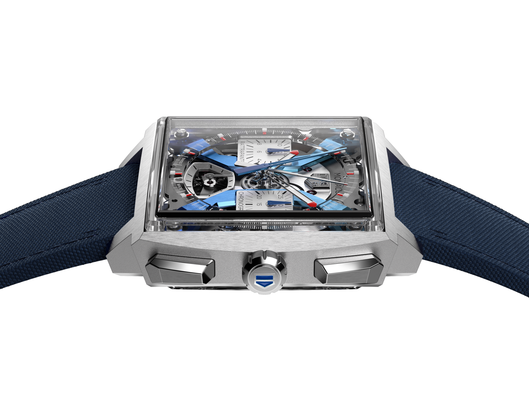 On the split-seconds hand and the titanium dial arches pay a vibrant homage to the original Monaco model from 1969, lending it a modern and dynamic look.