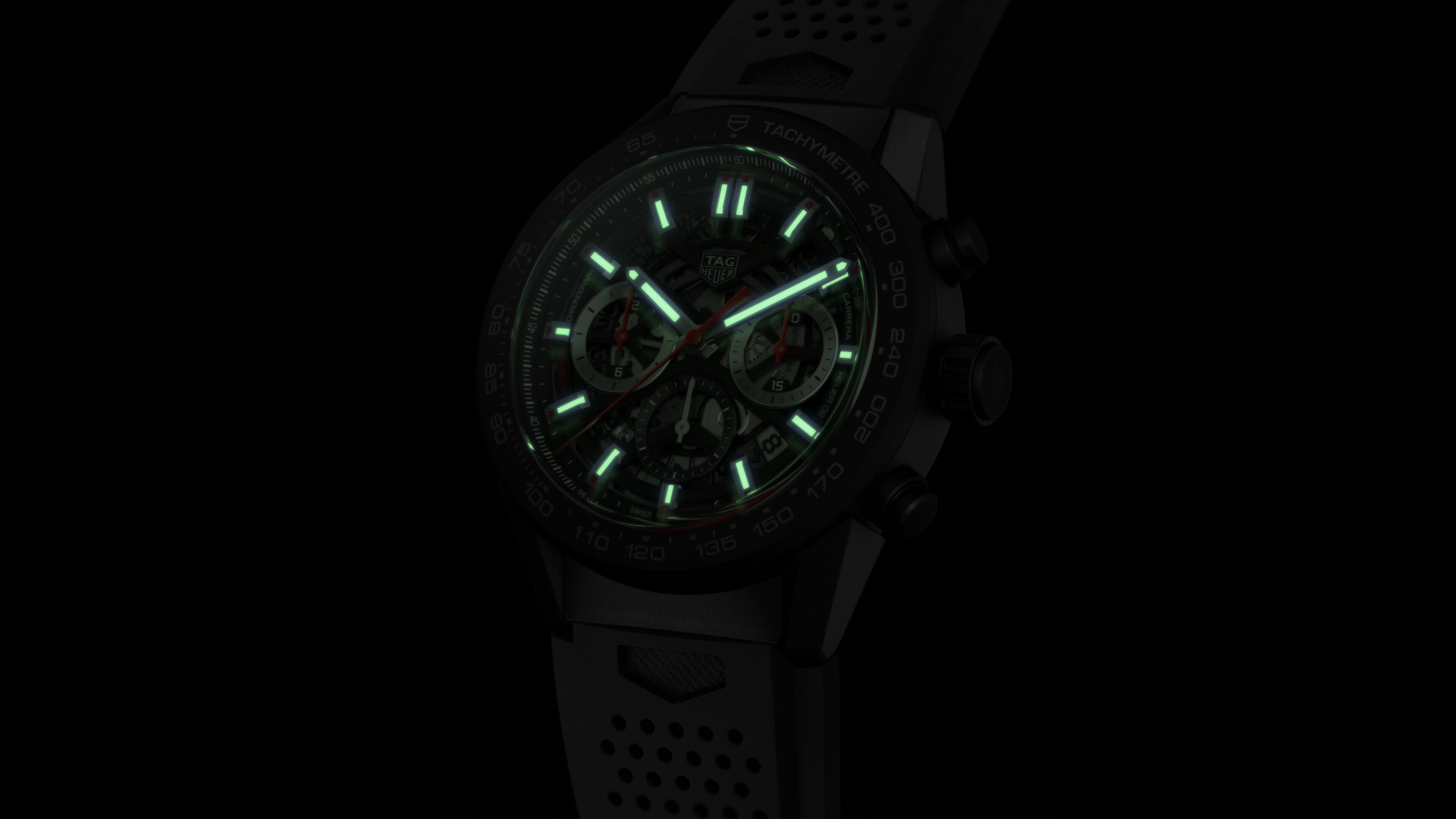 Automatik, 45 mm, Keramik CBG2A90.FT6173Ein schwarzer Automatikchronograph mit 45 mm Durchmesser, der den einzigartigen Wurzeln der TAG Heuer Carrera im Motorsport treu bleibt. Das skelettierte Zifferblatt weist die originale Zählerposition 3-6-9 auf. Sportliches Kautschukarmband. Das automatische Manufakturwerk Heuer 02 bietet eine eindrucksvolle Gangreserve von 80 Stunden.
