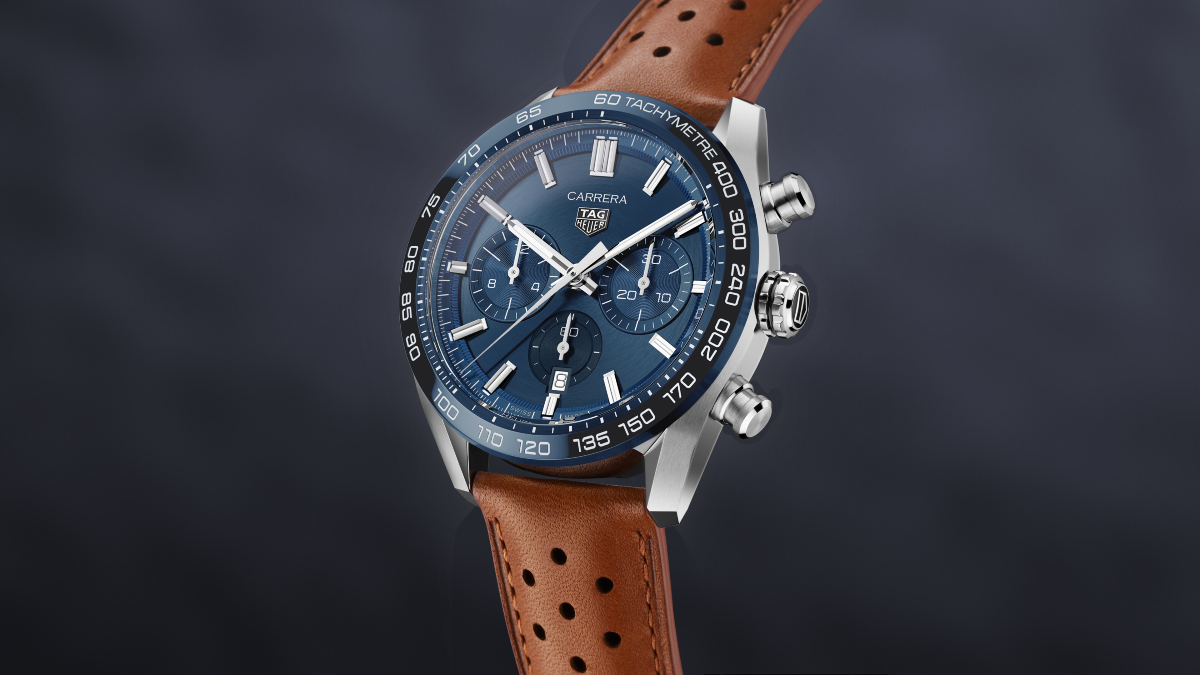 Dotée d'un esprit audacieux inspiré des courses automobiles, cette TAG Heuer Carrera présente un bracelet en cuir de veau remarquable au look singulier grâce à des perforations à l'allure sportive.