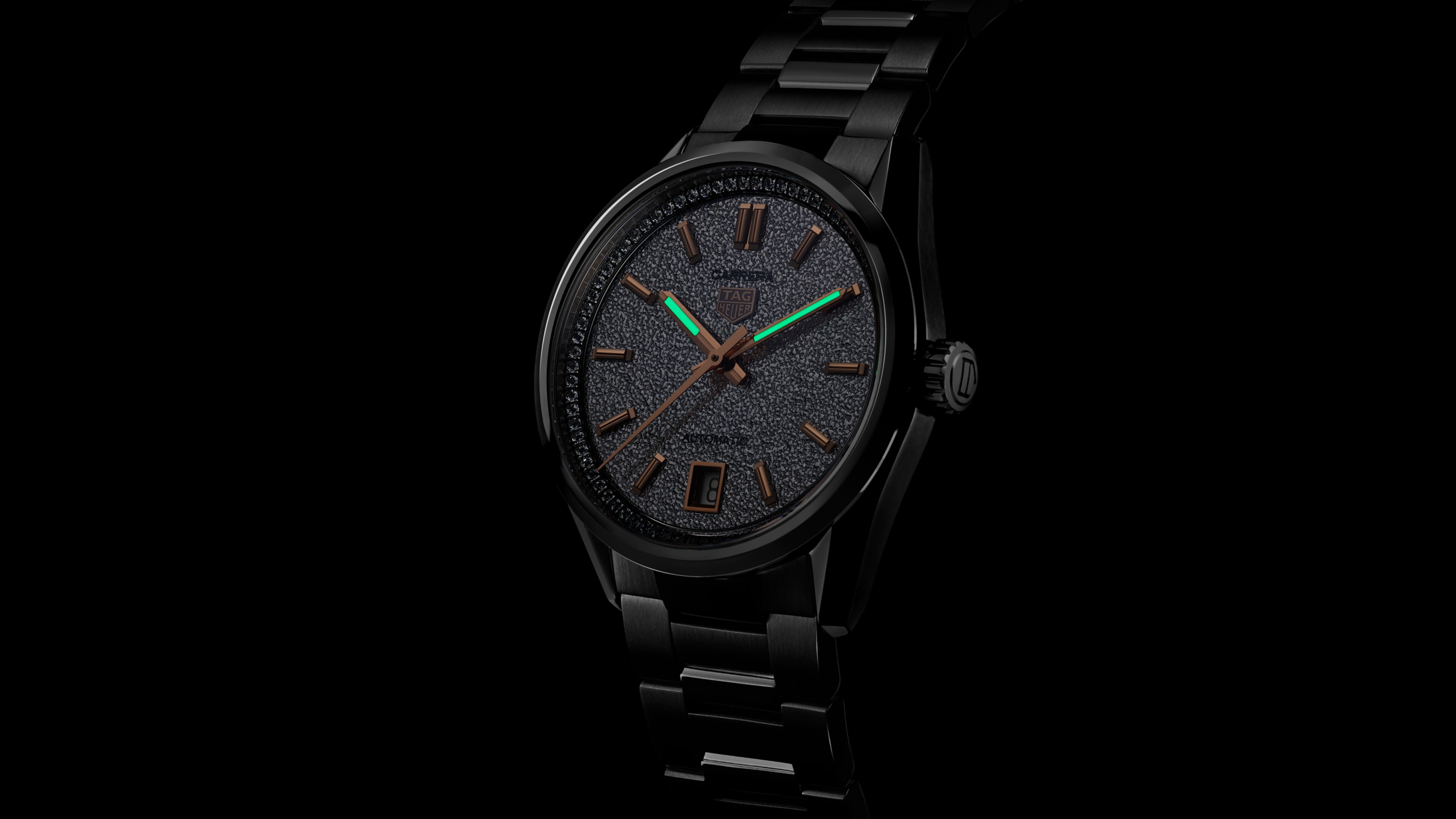 Automatic, 36 mm, Steel WBN231B.BA0001Elegance infuses every element of this luxurious TAG Heuer Carrera, crafted with utmost attention to detail. The subtle alliance of 76 diamonds (0.288 CT), rose gold plated indexes and hands, and silver adds a glamorous edge to this urban watch. An unmissable classic.