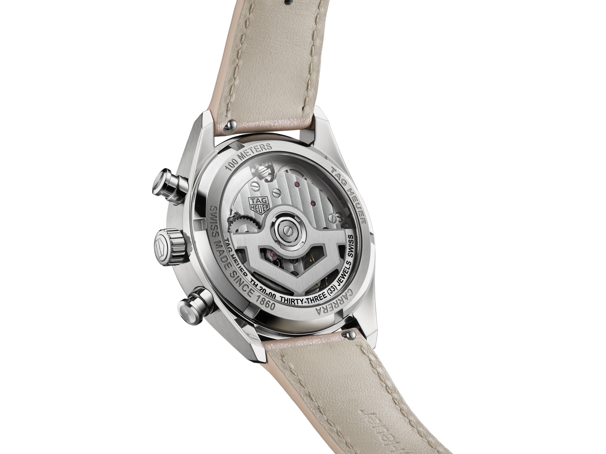 With its 39mm silhouette, this TAG Heuer Carrera timepiece Chronograph captures the essence of femininity and racing spirit. Featuring a soft pink dial set against the brilliance of diamonds, it encapsulates a luxurious, sporty aesthetic.