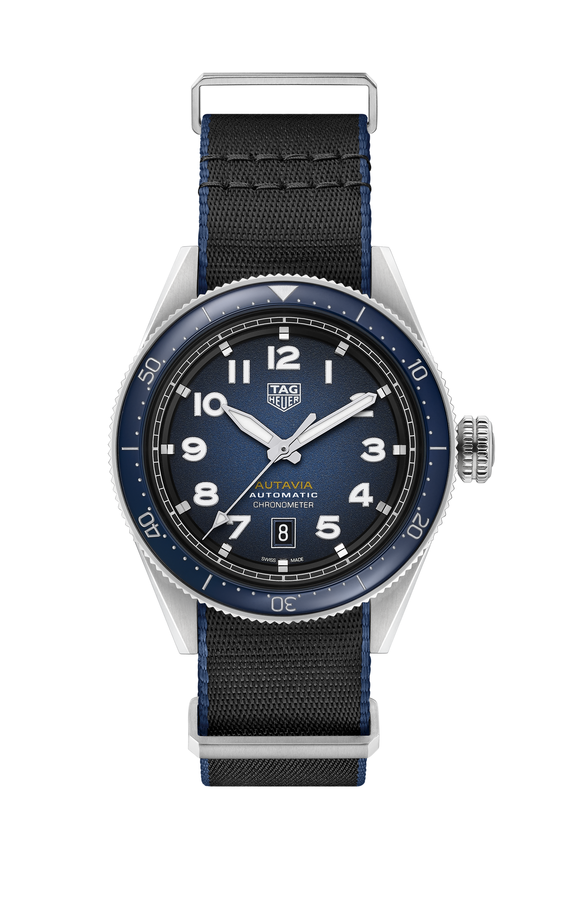 A contemporary take on the classic pilot’s watch, the Autavia comes with a stainless steel bracelet with steel folding clasp and double safety push-buttons. Also included in the box is an on-trend NATO, which can be clicked into place in seconds.