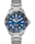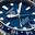 The ocean-inspired deep blue sunray brushed dial shows bright Super-LumiNova®-filled hands and indexes and a distinctive light blue GMT hand.