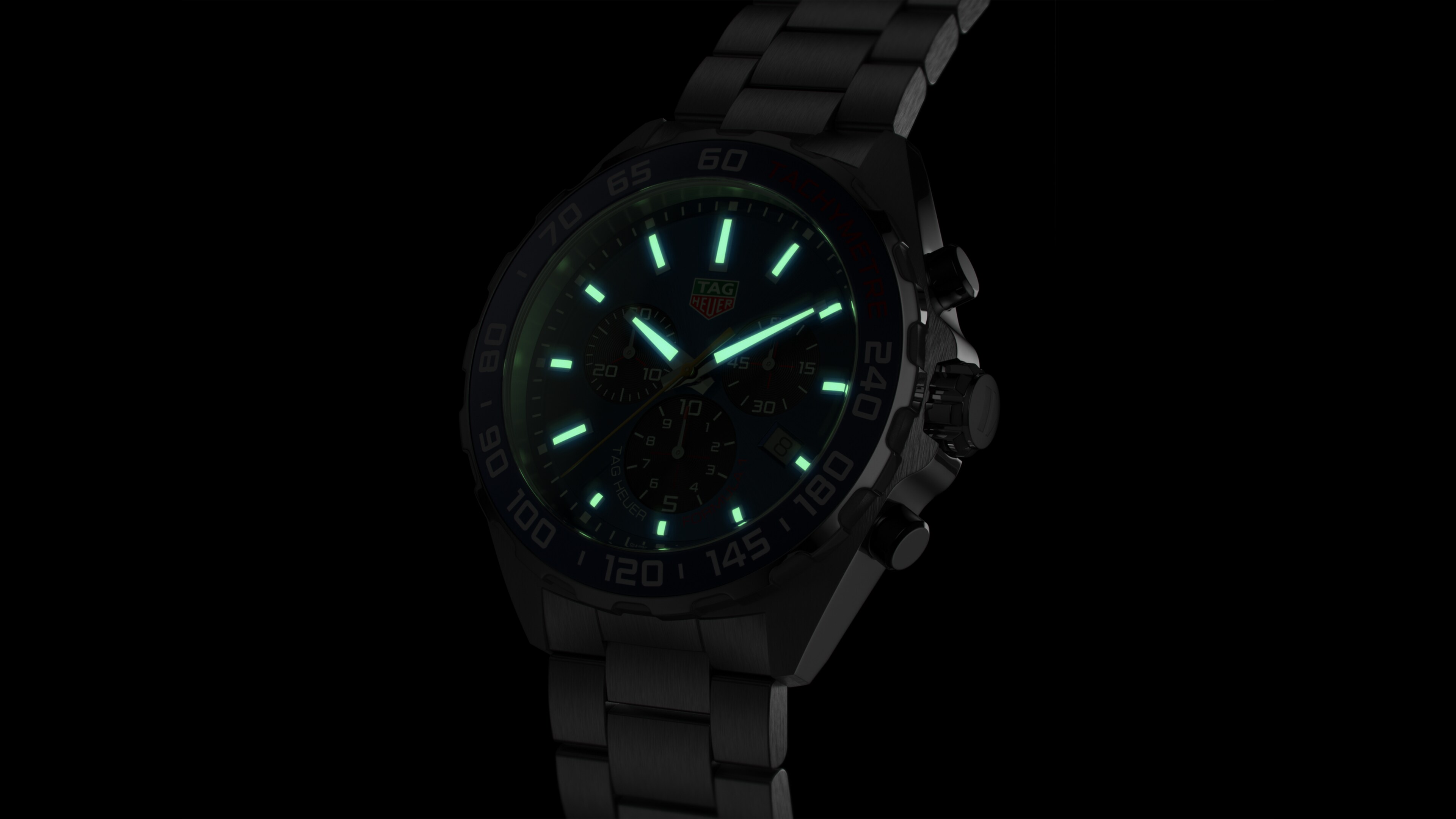 Precision quartz powers the movement, racecar cockpit design inspires the bold dial. Performance, nerve and speed – a chronograph as fearless and self-assured as the team it celebrates.