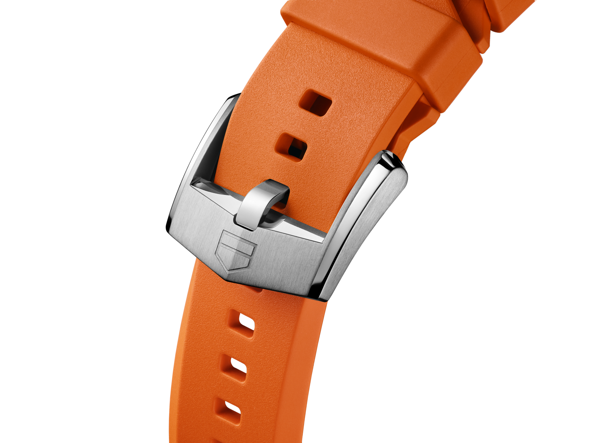 Energize your TAG Heuer Connected 40mm with this dynamic orange smooth rubber strap. Its vivid orange shade adds a zestful touch to your timepiece, perfect for those who appreciate a pop of color. The strap is secured with a steel pin buckle featuring the iconic TAG Heuer shield, blending style with practicality. It is not compatible with previous versions of Connected watches.