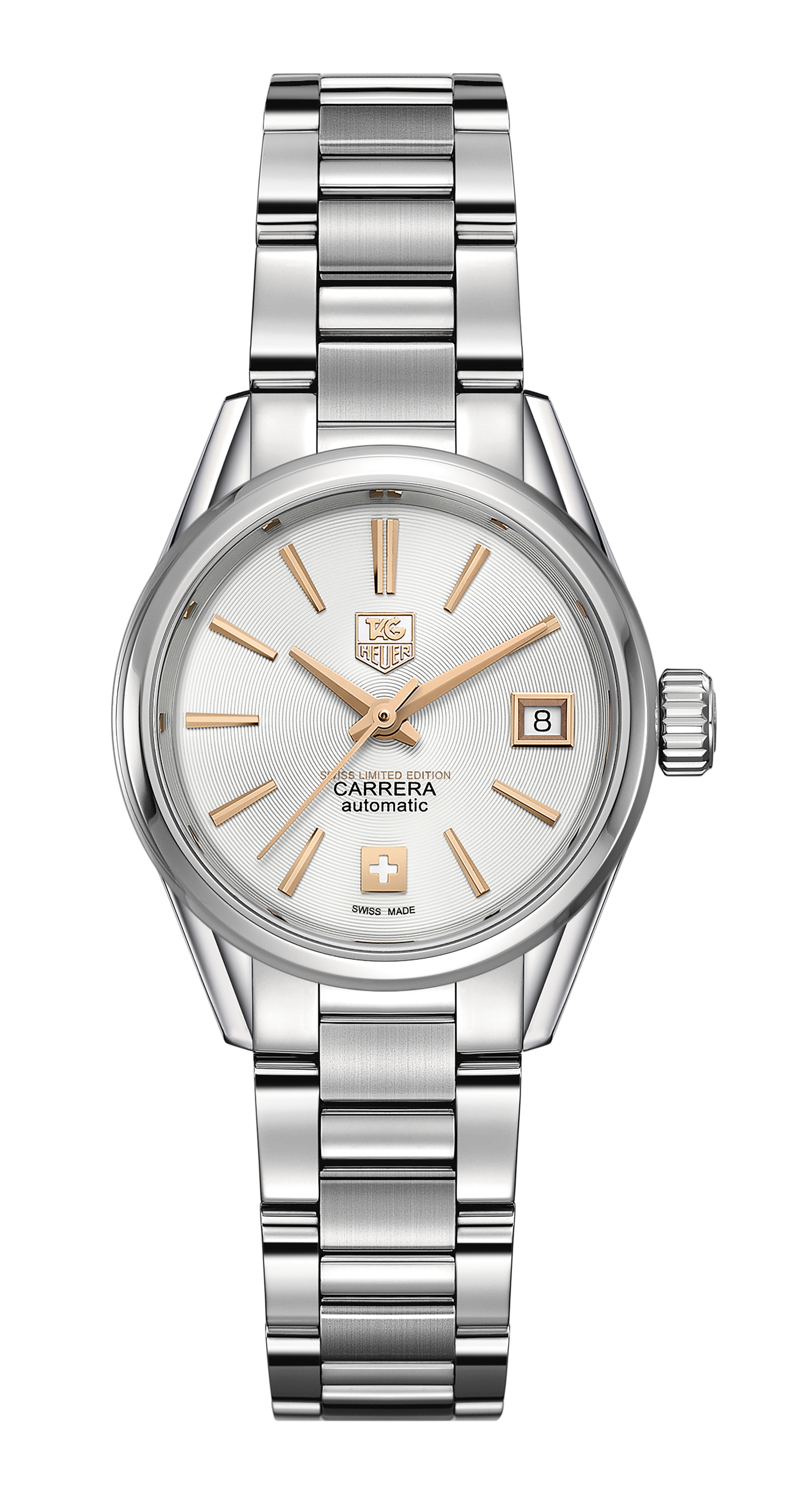 With its steel case and gold highlights, this 28mm TAG Heuer Carrera is the very picture of confidence. Part of a pair of limited editions celebrating Switzerland, this elegant version shows a Swiss flag flying proudly above the 'Swiss Made' text.
