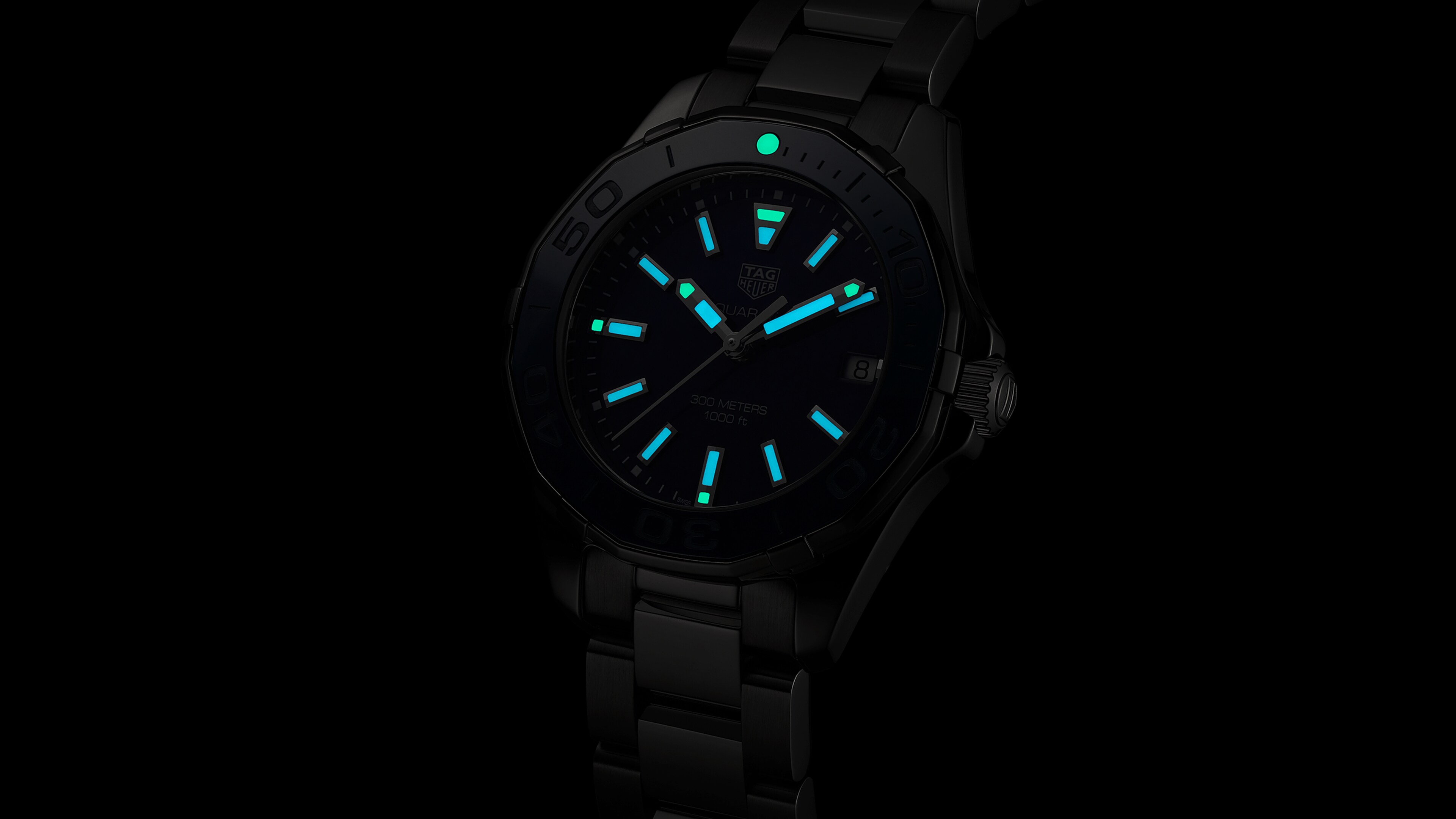 The unidirectional turning bezel allows you to time any activity up to one hour. Water resistant to 300 meters, it can be worn anywhere, no matter the occasion or setting.