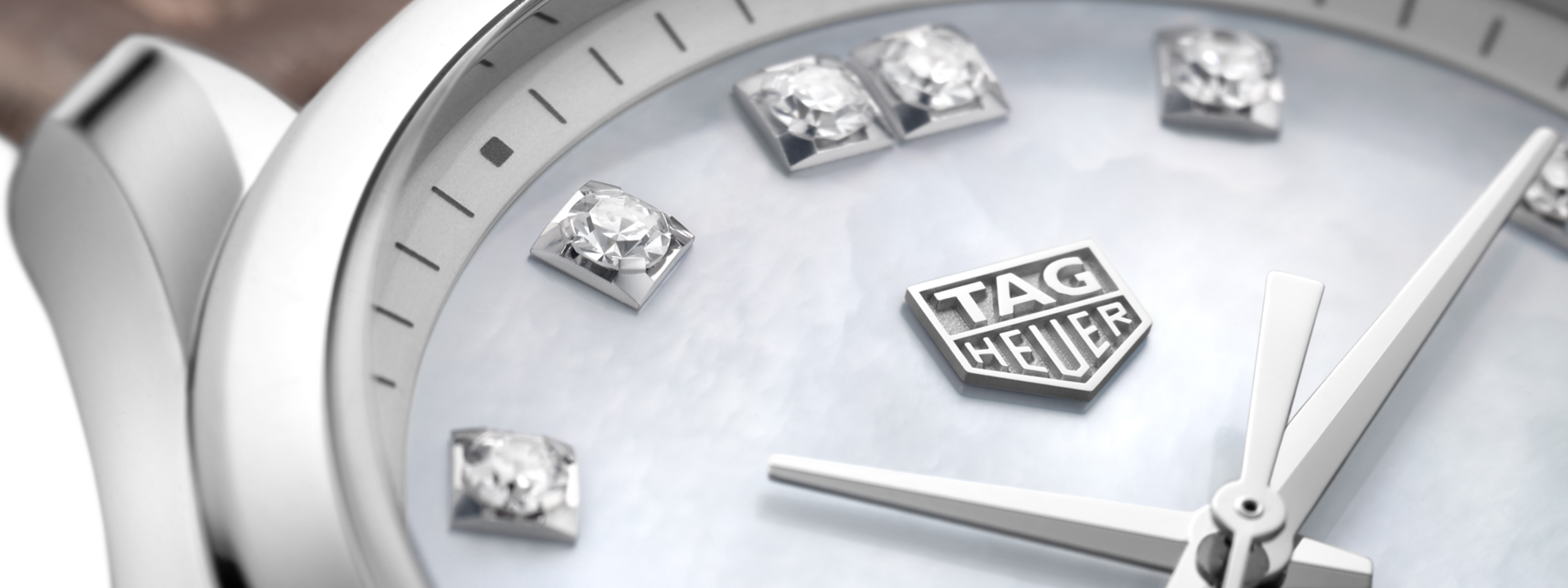 Quartz, 36 mm, Steel WBK1318.FC8258An haute-couture edition of the TAG Heuer Carrera Lady quartz, with diamond indexes and hand-crafted taupe strap of top-stitched alligator. The shimmering dial is white mother of pearl.