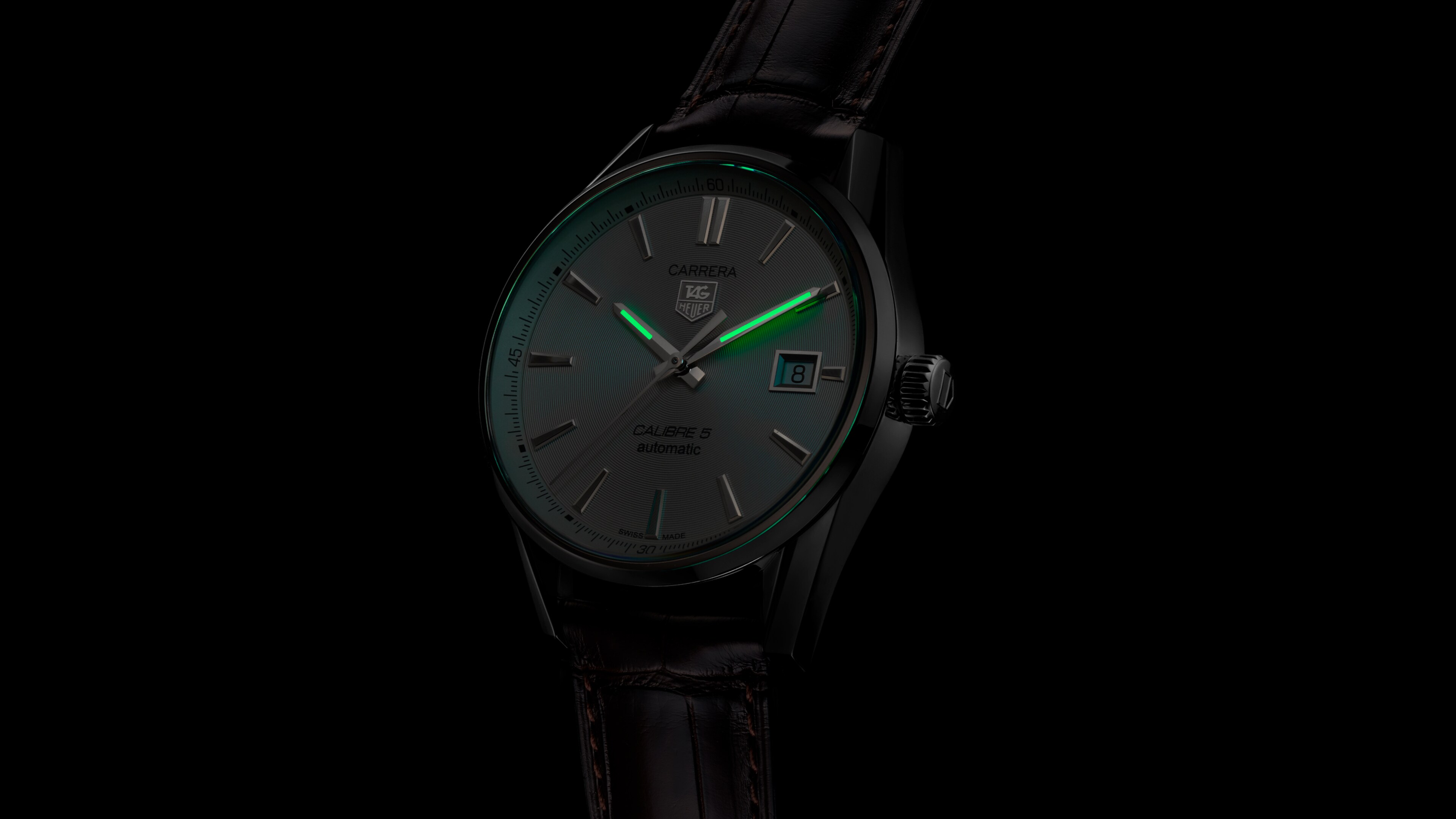 Automatic, 39 mm, Steel WAR211B.FC6181An elegant three-hand watch with white dial, classic TAG Heuer Carrera lugs and a brown alligator strap. Inside the 39mm steel case beats the robust Calibre 5 automatic movement.