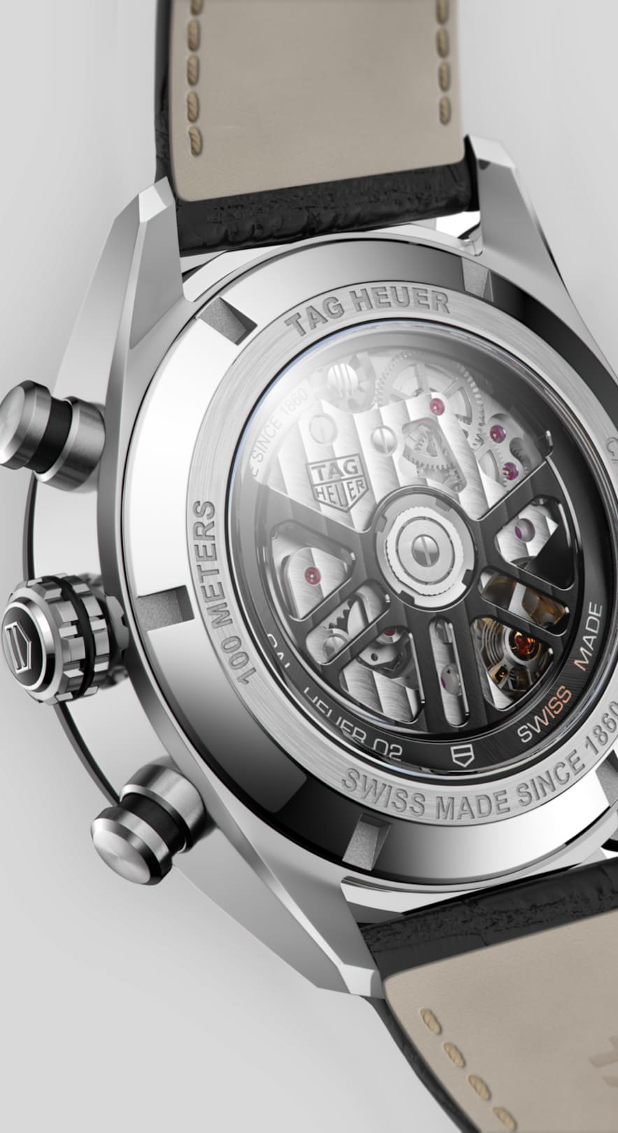 Inside beats our in-house Heuer 02 movement, an automatic column-wheel chronograph movement – signatures of improved chronograph timekeeping and high-quality manufacture movements - with an 80-hour power reserve.