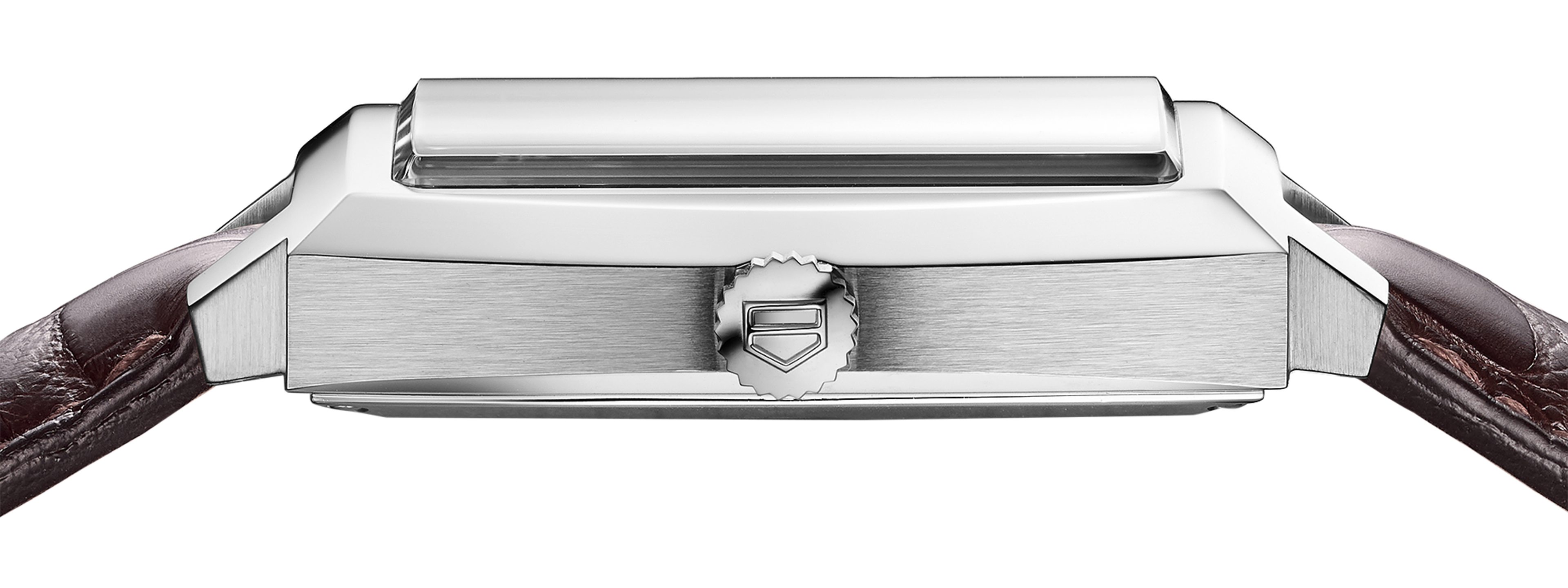 Twelve diamonds sparkle on the square, sunray-brushed dial. The polished and facetted applied hour and minute hands and indexes are plated in on-trend rose gold, as is the TAG Heuer shield.