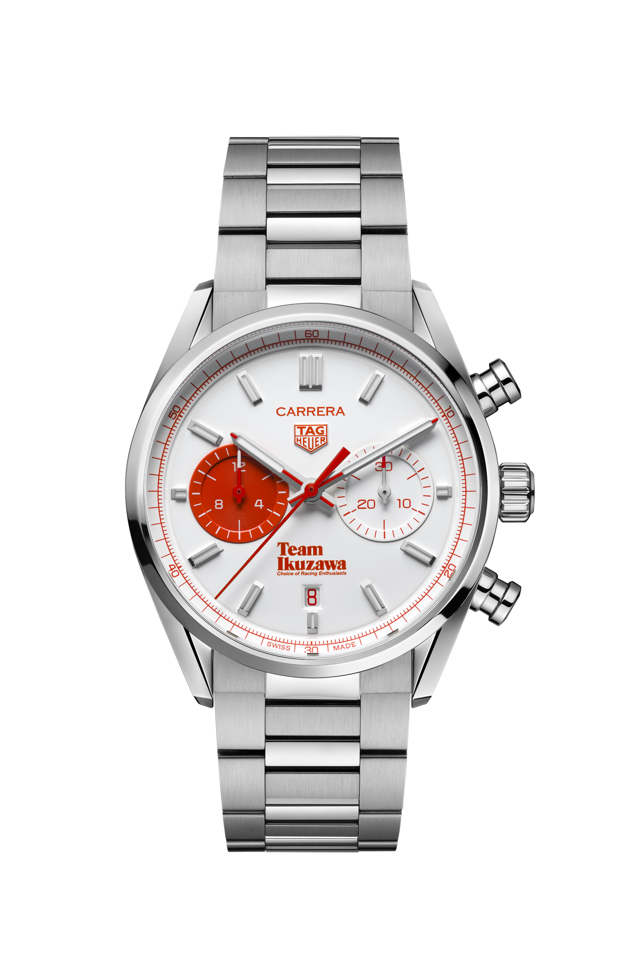 表盘采用白色蛋白石饰面,饰有醒目的红色60秒/分钟刻度 - 旨在向生泽团队及其文化致敬。镀铑抛光时标和指针,覆有白色Super-LumiNova®荧光涂料和红色漆面,彰显动感而精致的格调。腕表搭配42毫米精细磨砂抛光精钢表壳,内部搭载Heuer 02自制机芯。