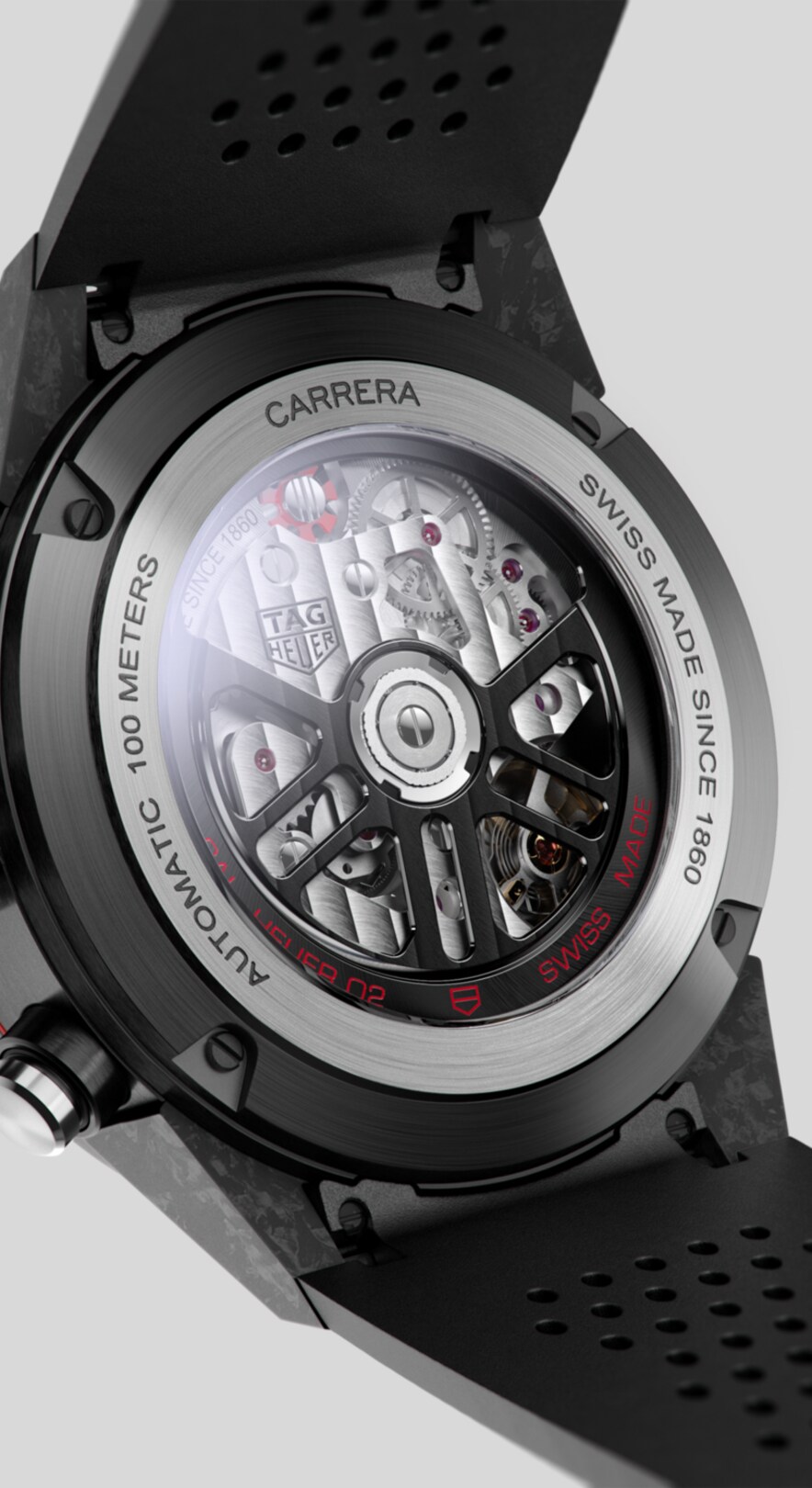 Automatic, 43 mm, Steel & carbon CBG2016.FT6143A black TAG Heuer Carrera built with the leading-edge materials of motor-sports: super-resistant carbon fiber for the tachymeter bezel and the iconic TAG Heuer Carrera lugs. Black PVD stainless steel is used for the 43mm case. Inside, the manufacture movement Heuer 02, with a stunning 80 hours power reserve.