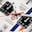 In tribute to Steve McQueen’s legendary Gulf-emblazoned racing suit, the silver-grained dial displays the emblematic blue and orange stripes and a fierce orange lacquered central hand.