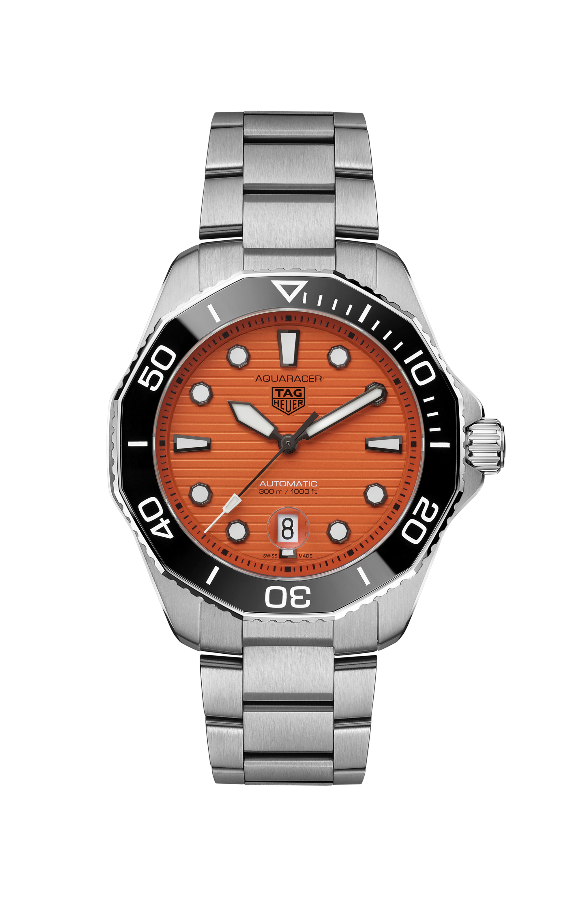 L'arancione è il colore della sicurezza in mare; questa vivace tonalità crea un elevato contrasto con il blu intenso delle acque: un quadrante destinato a farsi notare.