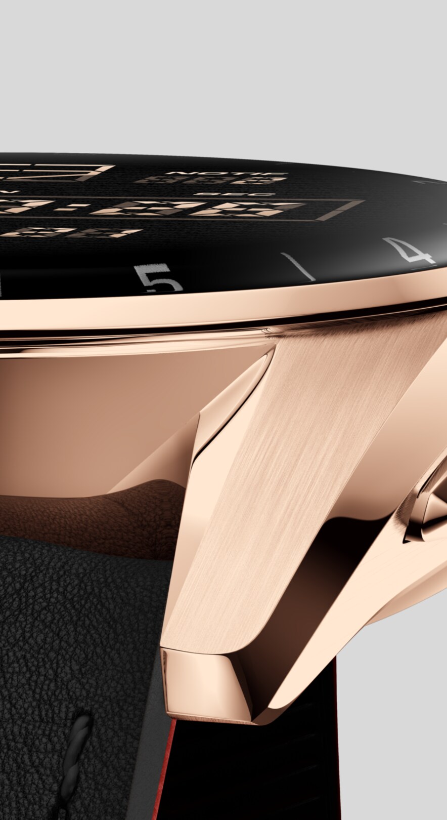 Showing tapered lugs, the stunning 42mm rose-golden steel case encapsulates the high-end sensors and OLED screen, crafted to track your best performances.