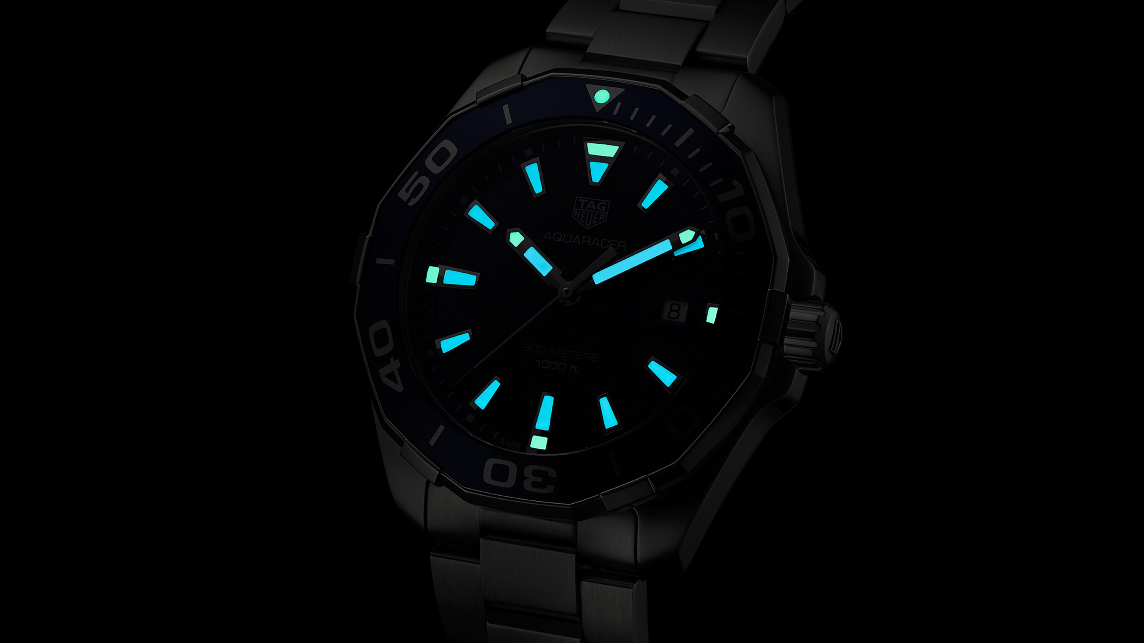 Quartz, 43 mm, Acier WAY101C.BA0746Une montre de plongée professionnelle extrêmement robuste avec un boîtier en acier de 43 mm et un mouvement à quartz fabriquée en Suisse. Le bleu accrocheur du cadran, la lunette tournante unidirectionnelle avec échelle de 60 minutes et le rehaut sont la touche Aquaracer, tout comme la touche orangée de la trotteuse. Etanchéité de 300 mètres.