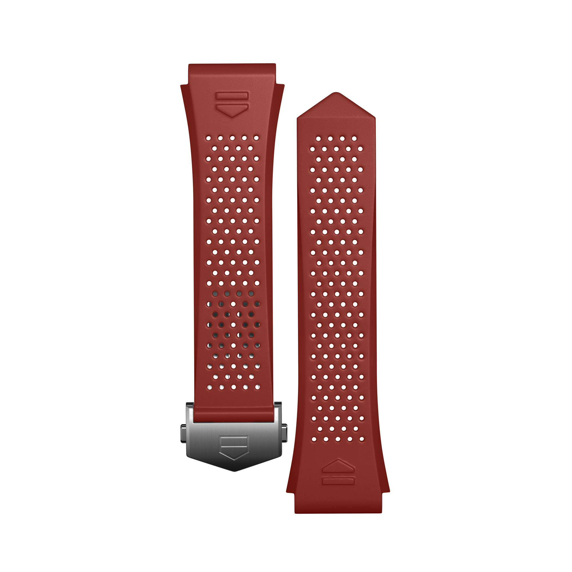 Add some color to your luxury smartwatch and further customize your experience with this vibrant red rubber strap, suitable for any TAG Heuer Connected Calibre E4 Watch 45mm, fitted with a steel folding buckle. Enter a new dimension in watchmaking. It is not compatible with previous versions of Connected watches.