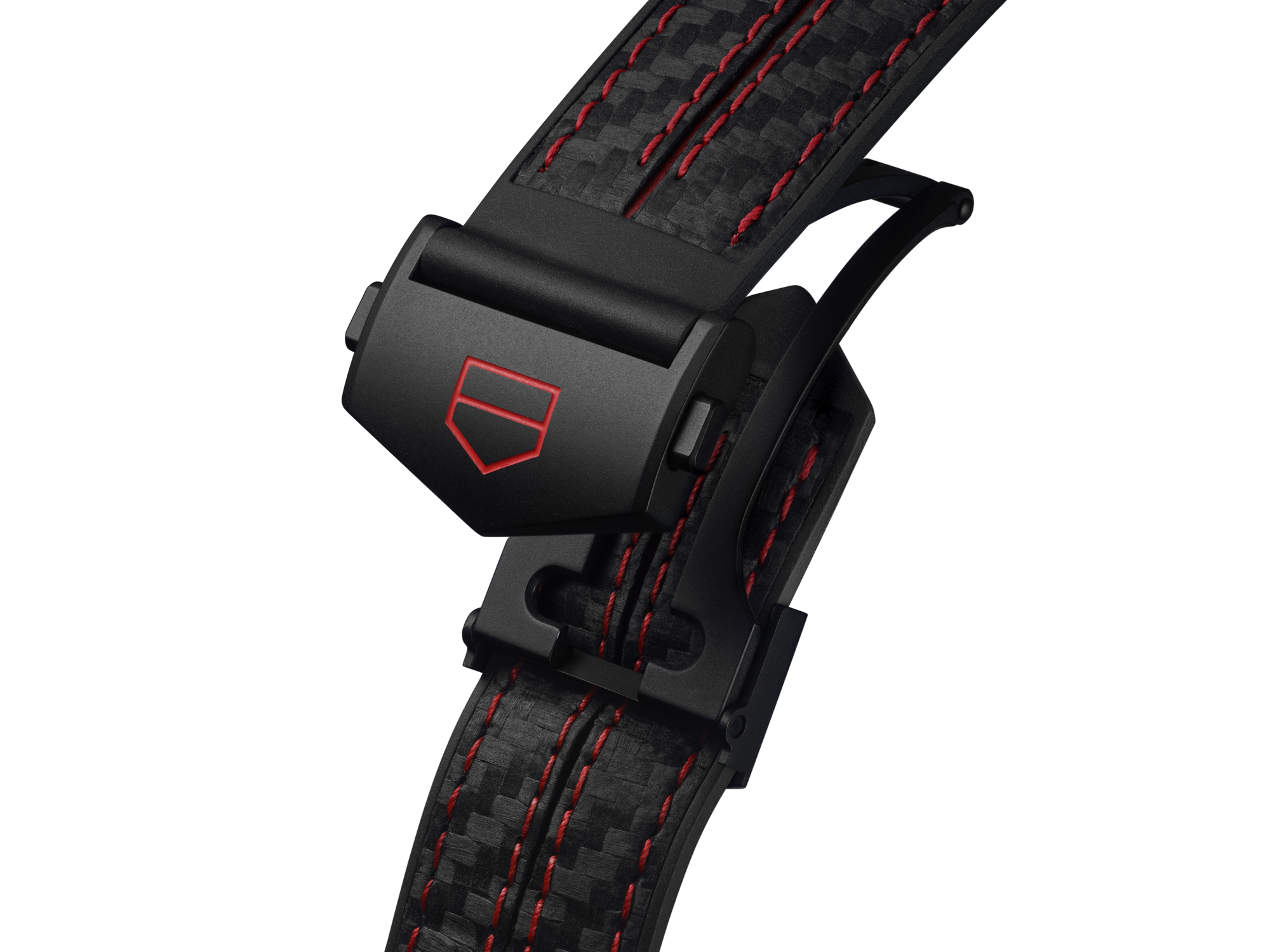 Bold red lacquered pushers and a black polished ceramic bezel reflect the adrenaline of the paddock. The integrated bi-material strap combines a carbon-patterned leather finish with red stitching for a sport-driven aesthetic. A second self-fastening strap embossed with the F1® logo offers an alternative fit with a decisive racing character.