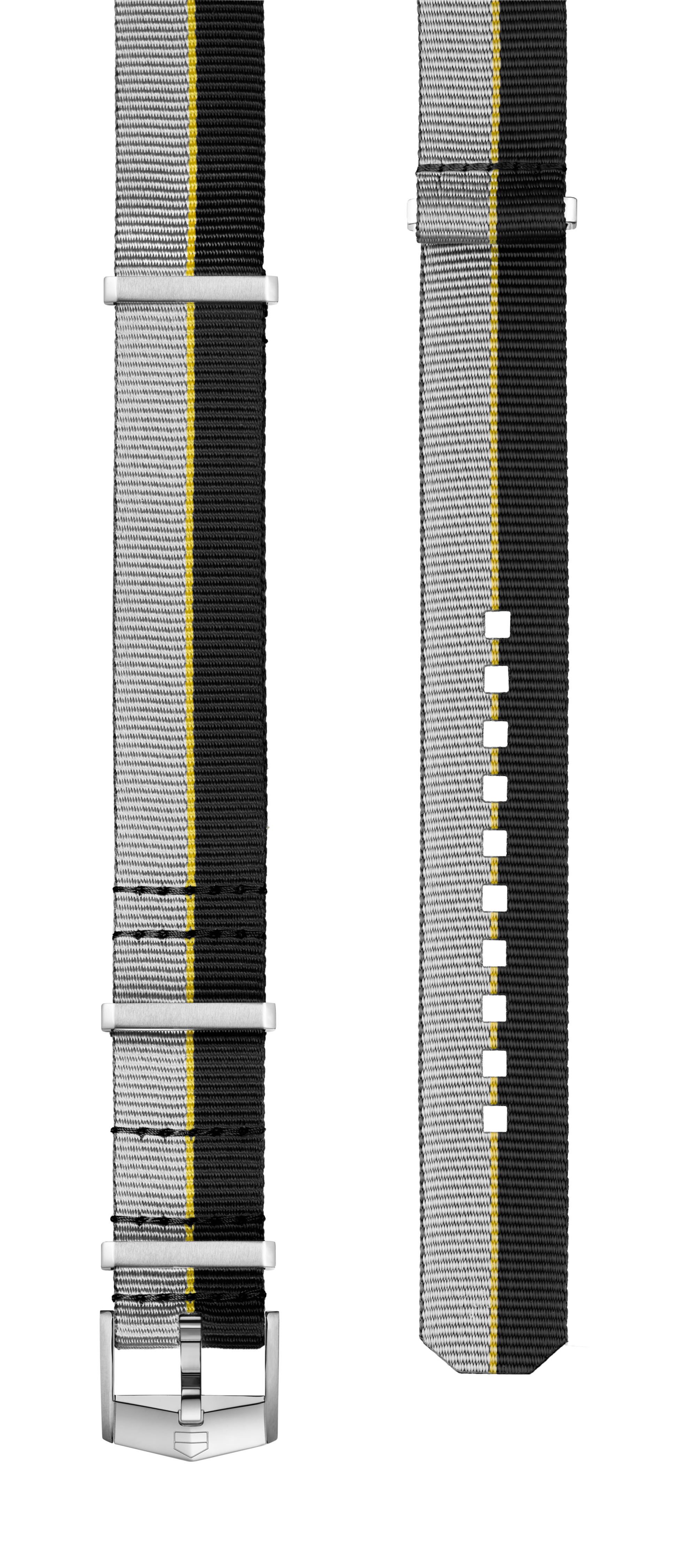 可替换织物表带完全由回收再生的渔网材料制成,适用于所有TAG Heuer Aquaracer(竞潜系列)Professional 300腕表36毫米表款,助您突破个人极限。表带中央饰有明亮色彩点缀,令原本单一的黑色与灰色立显瞩目出众。