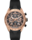 鏤空錶面具有精美的NAC飾面和粒面黑色中央部位。鍍18K 5N玫瑰金細節遍佈鏤空計時盤、指針、刻度,黑色外緣的金色輪廓營造鮮明對比。
