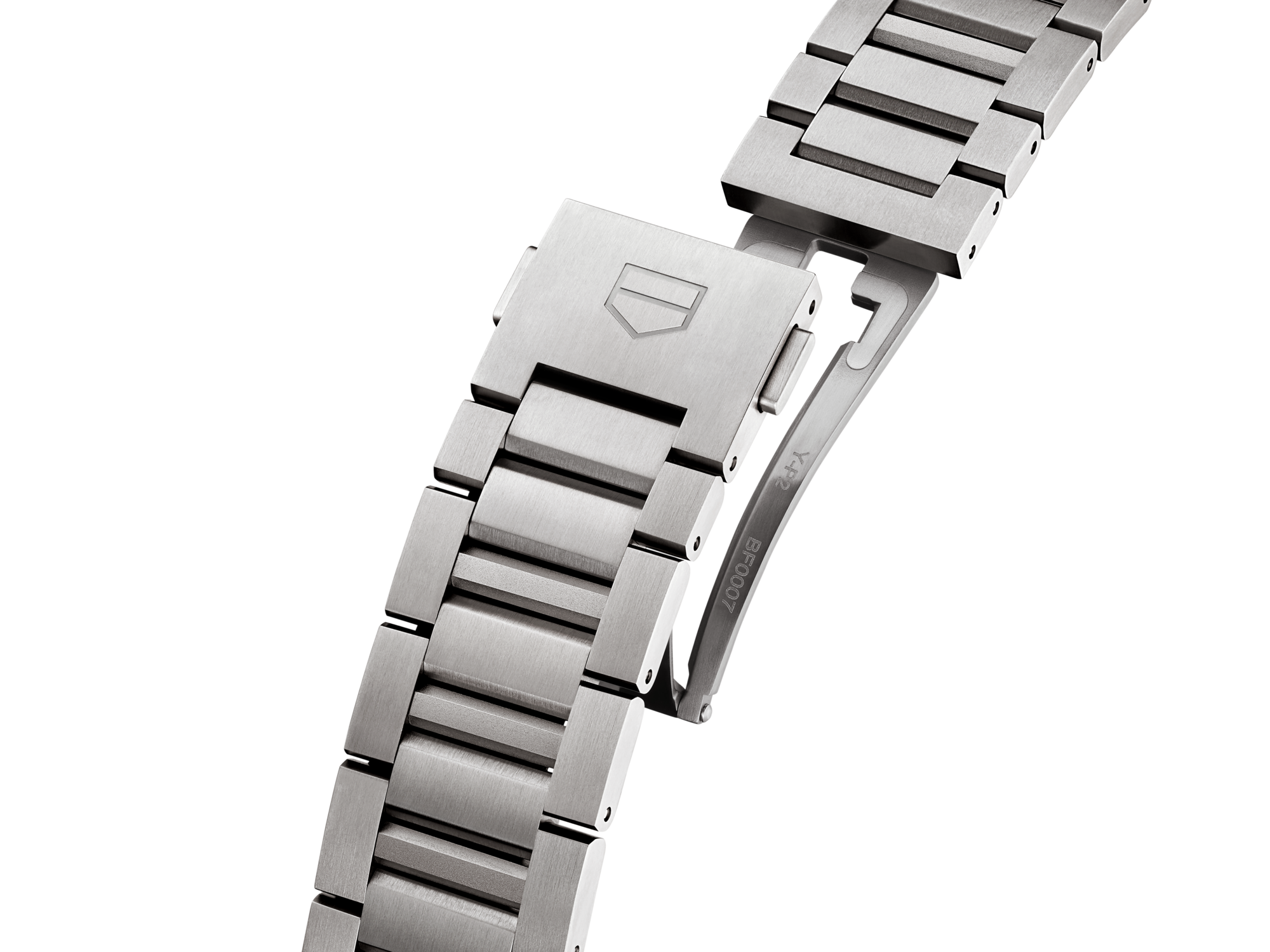 腕錶配備精細磨砂2級鈦金屬H形錶鍊,確保在運動期間穩固貼合且佩戴舒適。搭配配備雙安全按鈕的精細磨砂鈦金屬摺疊錶扣,無論佩戴於運動護具之外或日常佩戴皆精準穩固。