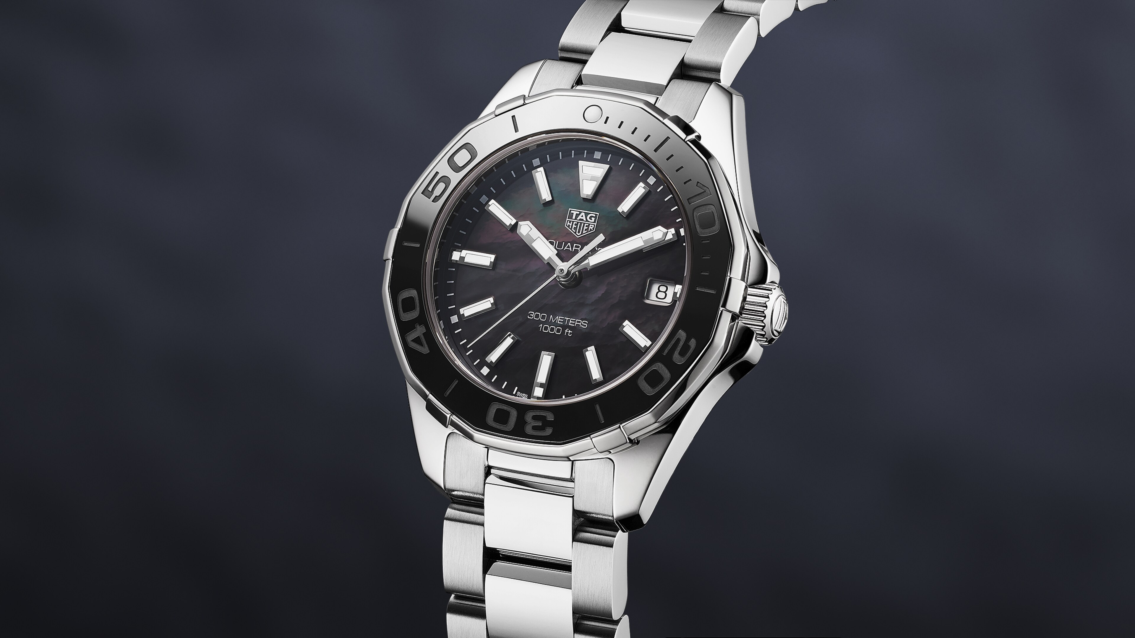 Quartz, 35 mm, Steel WAY131K.BA0748A stunning black mother-of-pearl dial and polished black ceramic unidirectional turning bezel give this quartz ladies watch its glamour. Alternate-finished steel bracelet, case back and diver’s screw-down crown add to the allure.