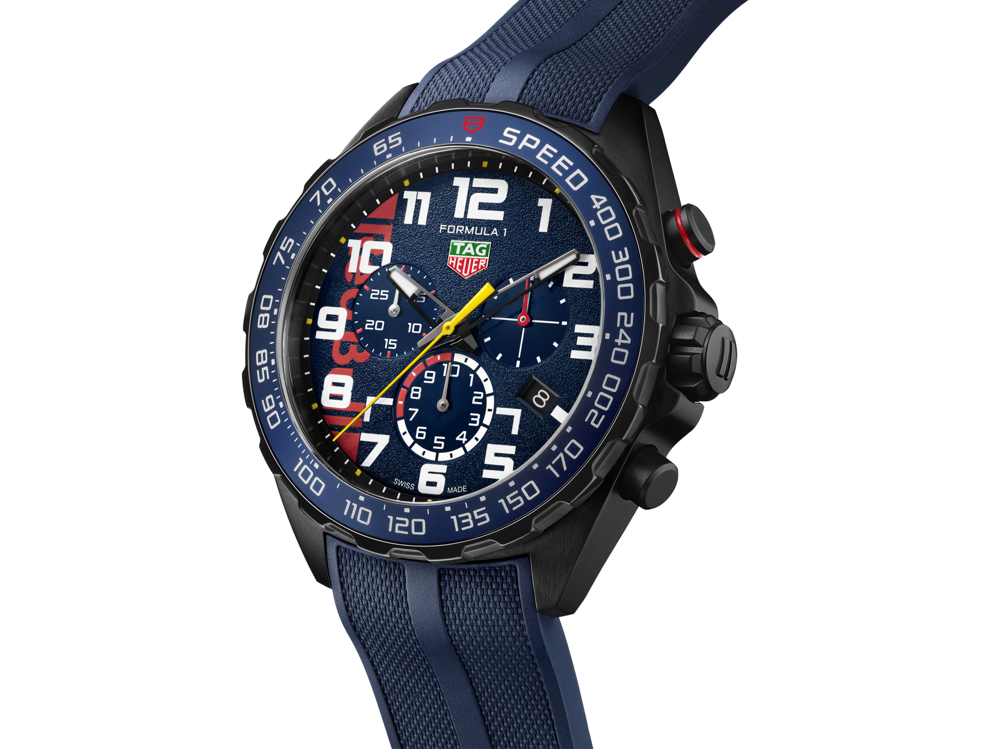 Complete with a blue rubber strap and the Oracle Red Bull Racing emblem on the caseback, this watch celebrates 20 years of success. The special 20th-anniversary logo and checkered flag motif etched on the caseback further cement its status as a collector’s piece.