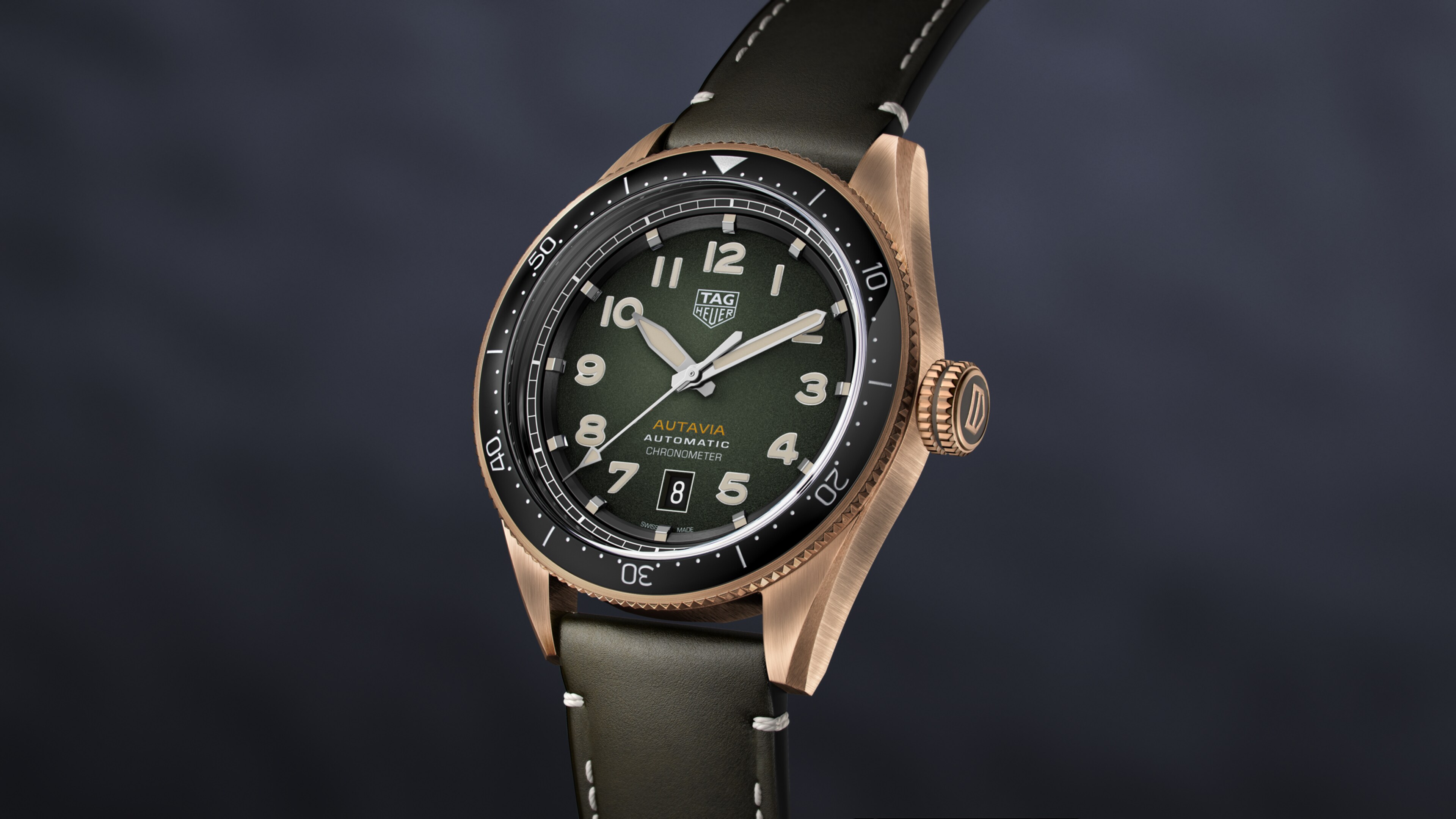 Automatic, 42 mm, Bronze WBE5190.FC8268A seriously rugged men’s automatic watch with bronze case and on-trend khaki smoked dial. Inspired by classic explorer’s watches, the design is upgraded by 21st-century materials, including titanium for the case back and black ceramic for the bidirectional turning bezel.
