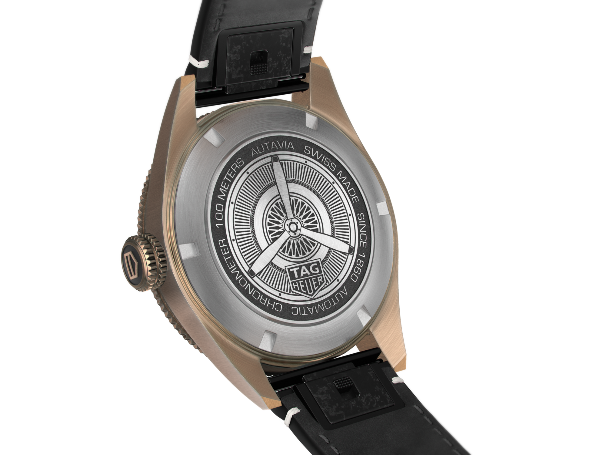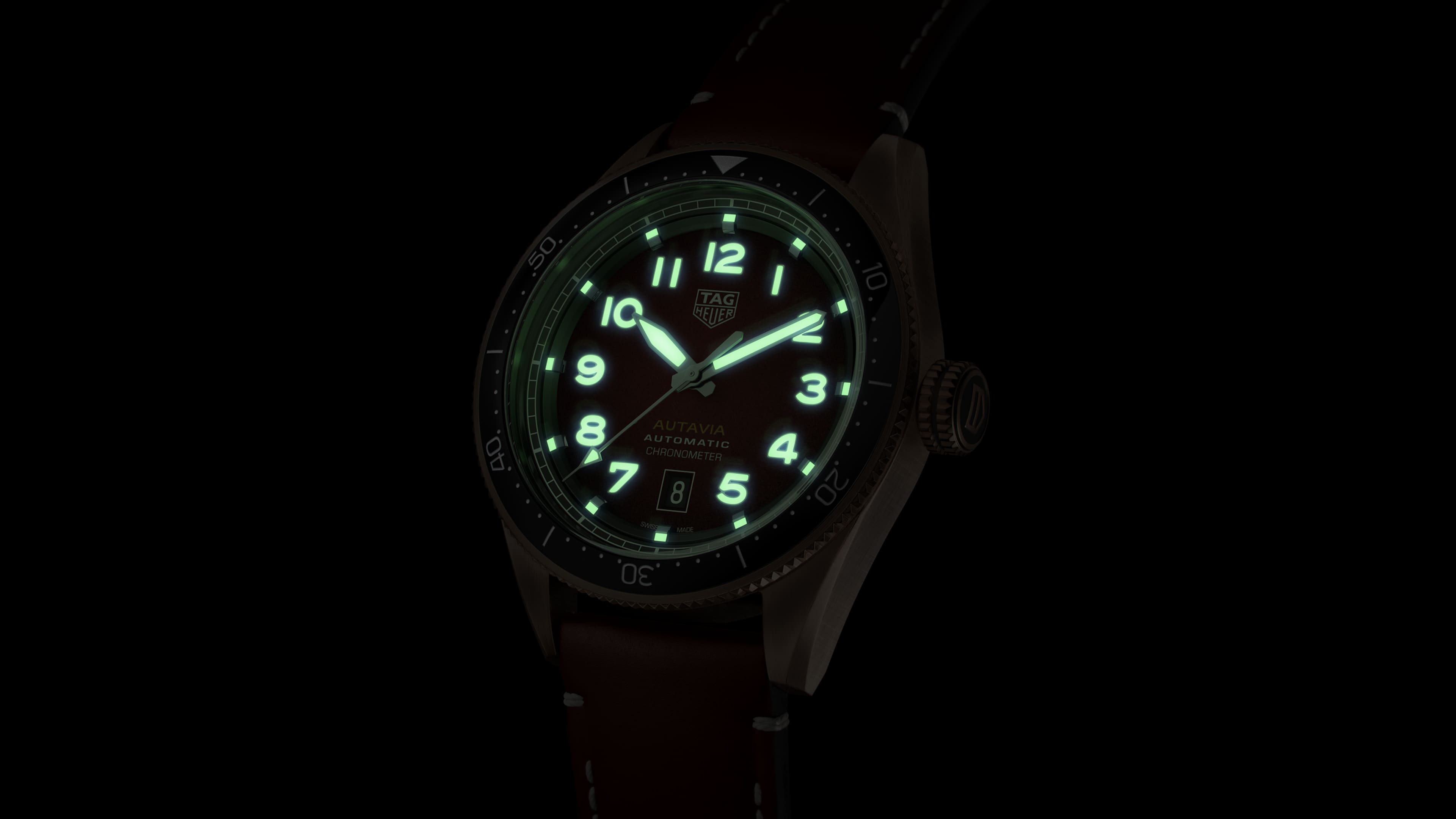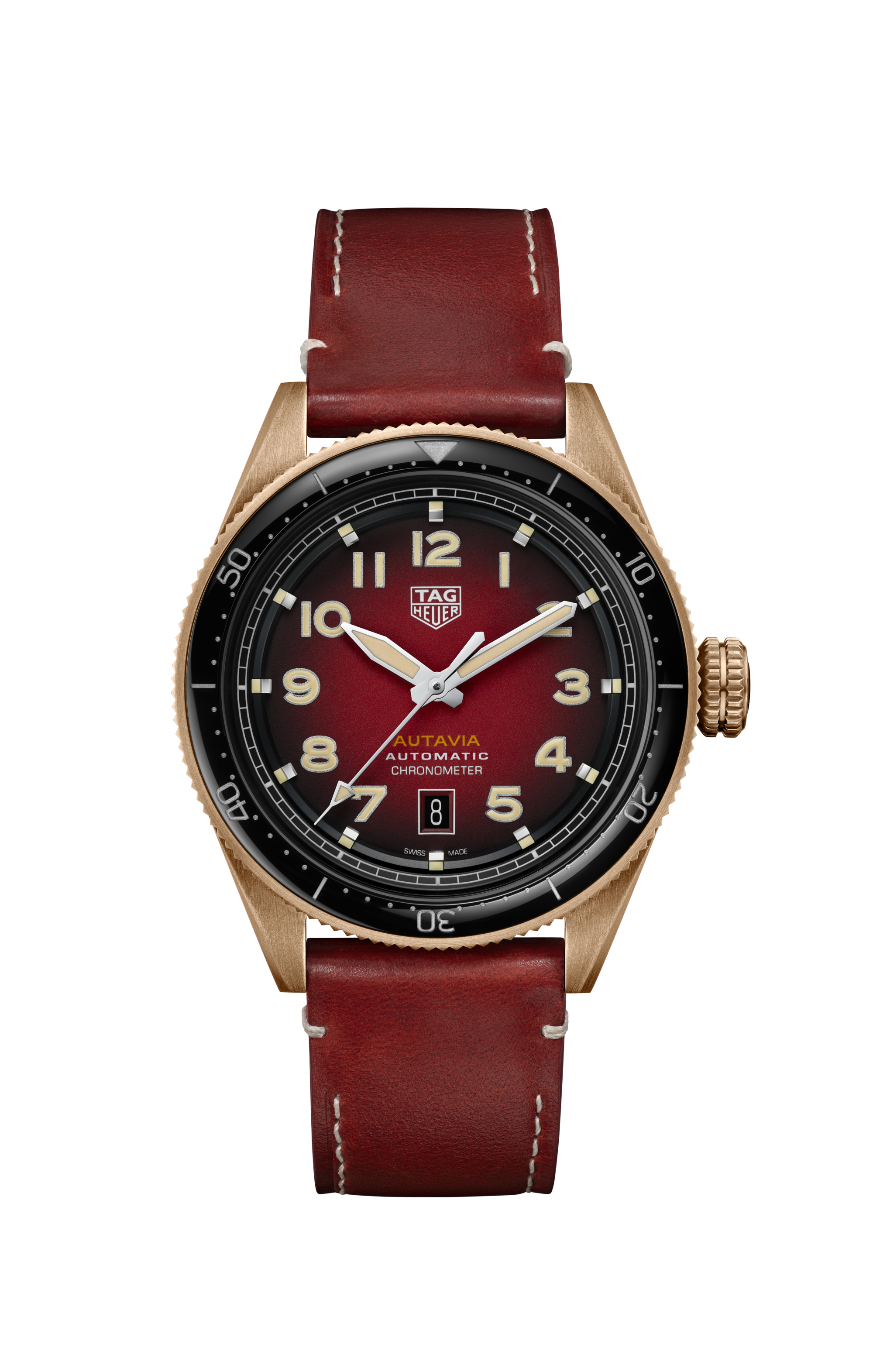 The Autavia in bronze tells a unique story with an ever-changing patina that captures the wearer’s adventures while keeping time with a COSC-certified automatic movement.
