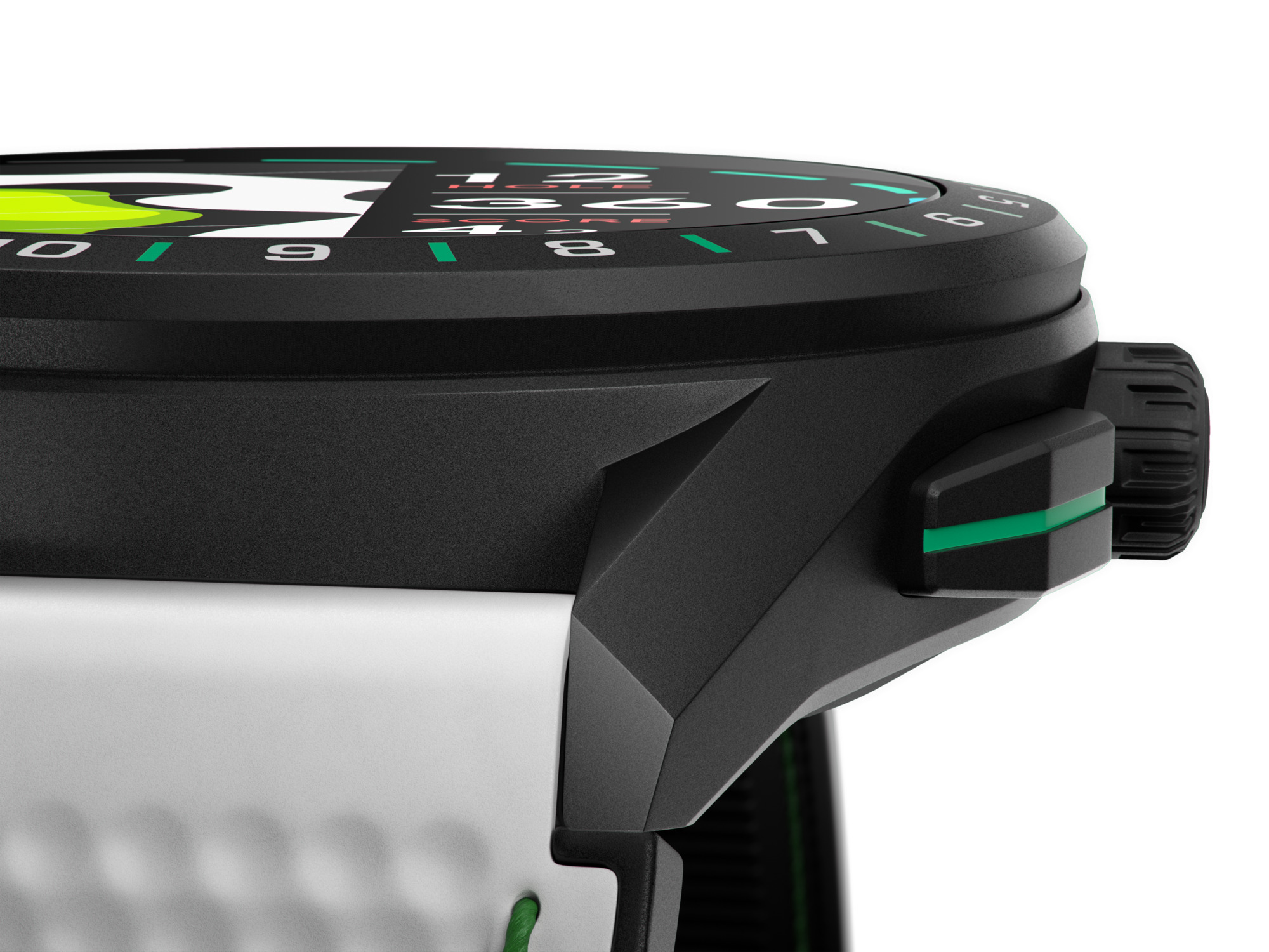 TAG Heuer’s sporty spirit is expressed in a special edition designed for the most discerning golfers. Built-in GPS will help you for every move with great accuracy. High-tech materials: ultra-lightweight titanium case with matte finish, and ceramic bezel with exclusive Golf Edition crown. It features two straps, the first in black rubber, the second in white golf-pattern with green stitching. The two straps, three balls, a TAG Heuer divot tool and tees are all included in the exclusive set of this Connected Golf Edition watch.