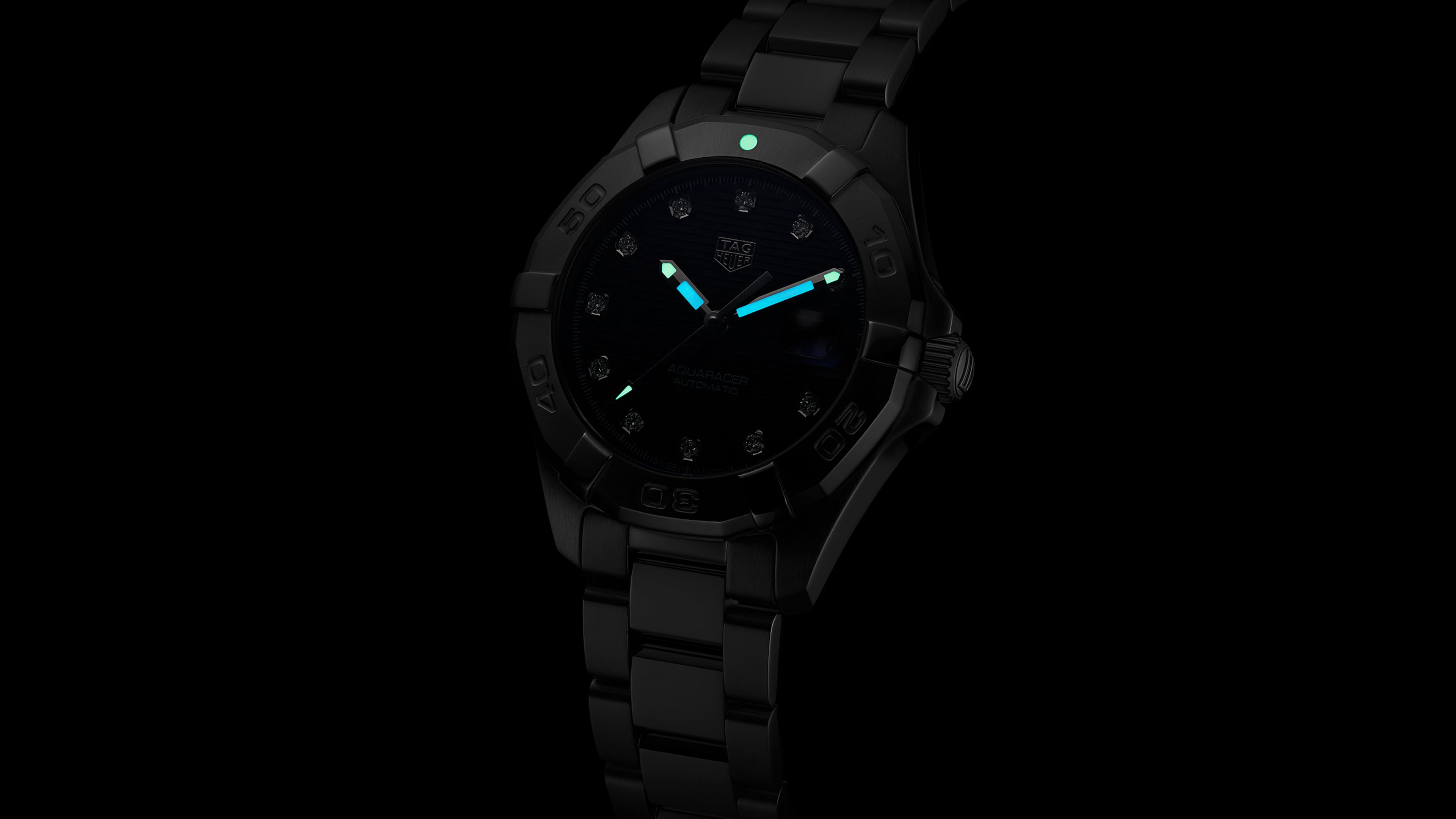 Automatic, 32 mm, Steel WBD2312.BA0740A glamorous Aquaracer Lady with black mother-of-pear and diamond dial, with the essential attributes of a sports watch. This timepiece is equipped with an automatic movement Calibre 9 and water-resistant to 300 meters.